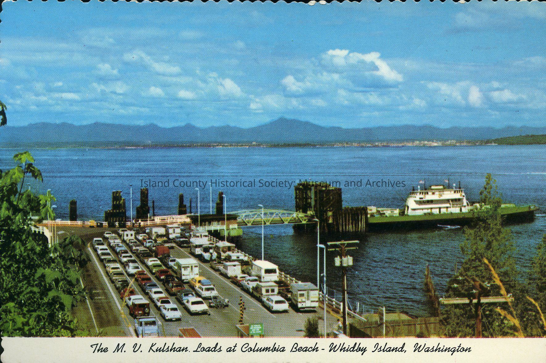 Postcard of the M.V. Kulshan loading at Columbia Beach (Clinton), "Whidby" Island, Washington.Collection