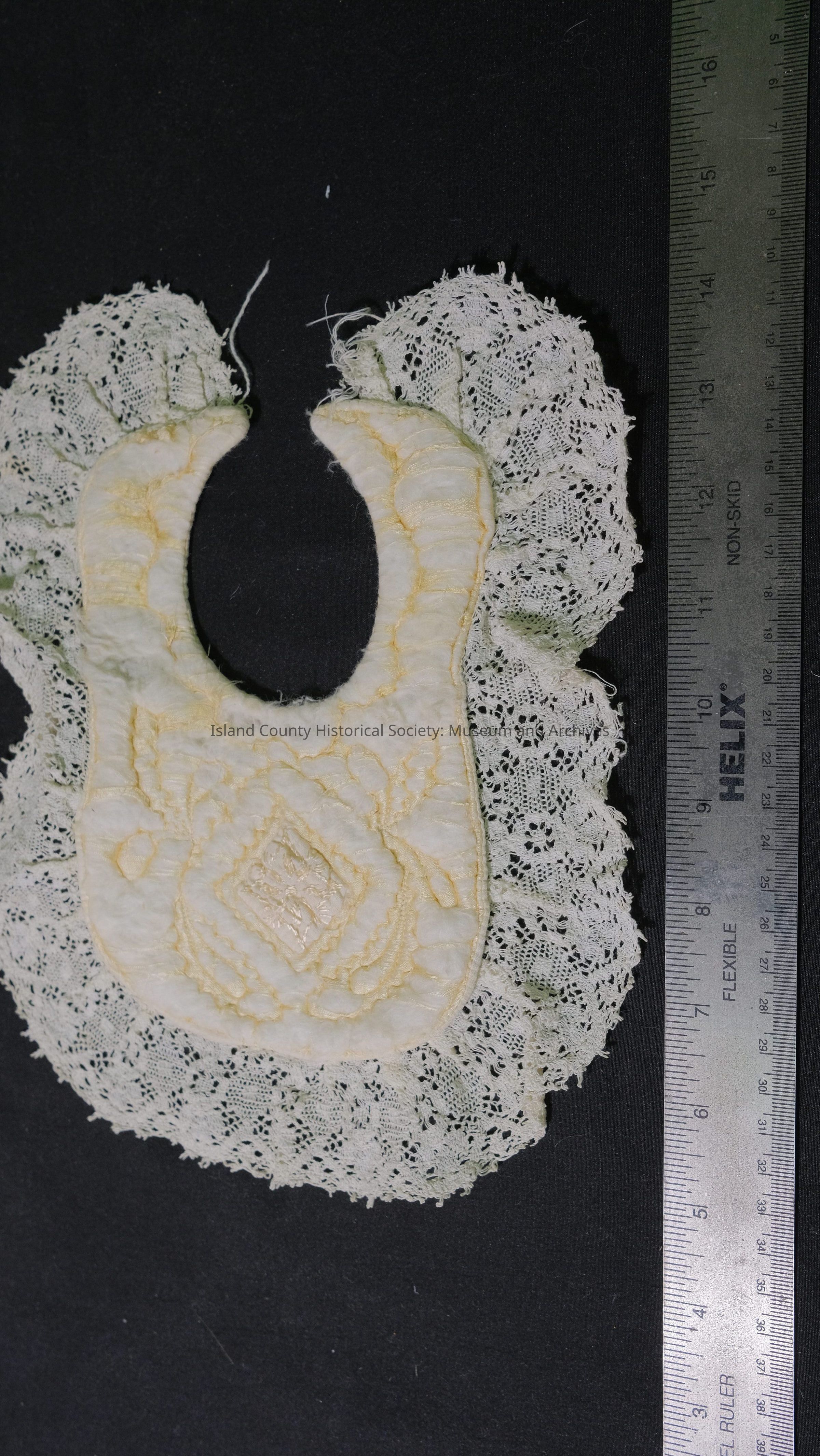 Baby bib - worn satin with lace trim