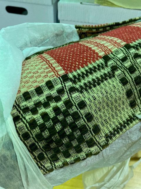 Hand woven coverlet - woven by Fern Ferguson's grandmother (father's mother) when traveling across the Plains in 1861