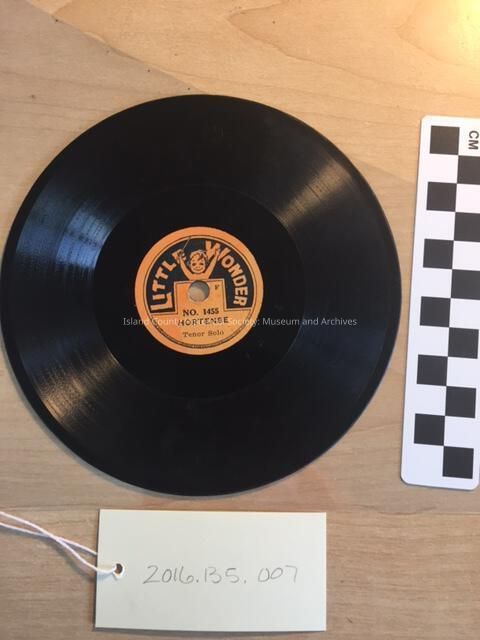 A childrens music/story record. Little Wonder. No. 1455. Hortense. Tenor Solo. Arly G. Ostling's childhood playthings. Circa 1917.