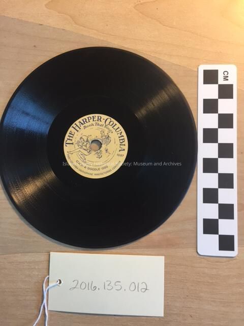 A childrens music/story record. The Harper-Columbia, Book That Sings record. No. 1087. Cock-a-doodle-do. Arly G. Ostling's childhood playthings. Circa 1917.