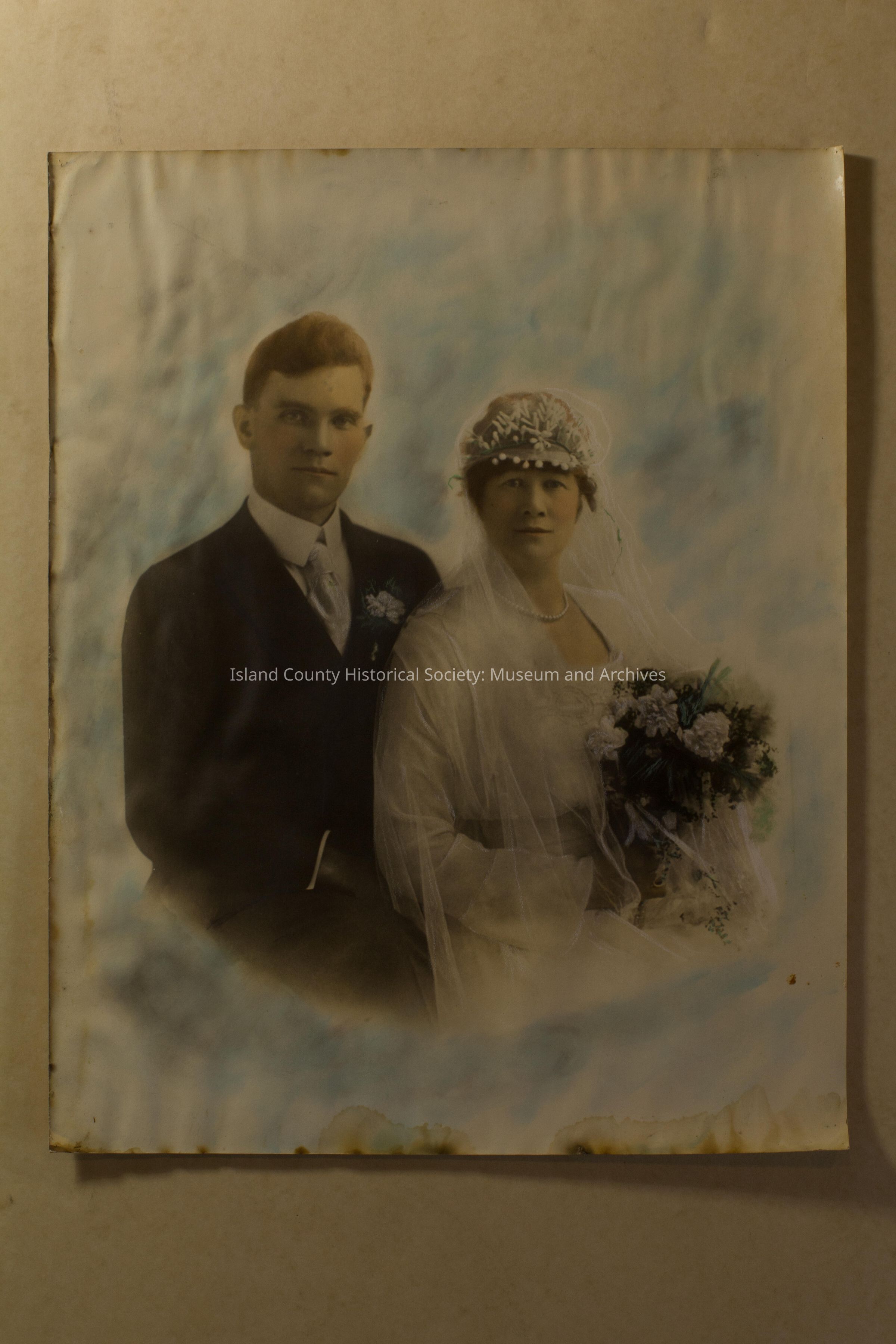 Hand colored wedding photo of Alexander. Was sent to Grandma Alexander from Dad, (Robert Alexander), in 1881.