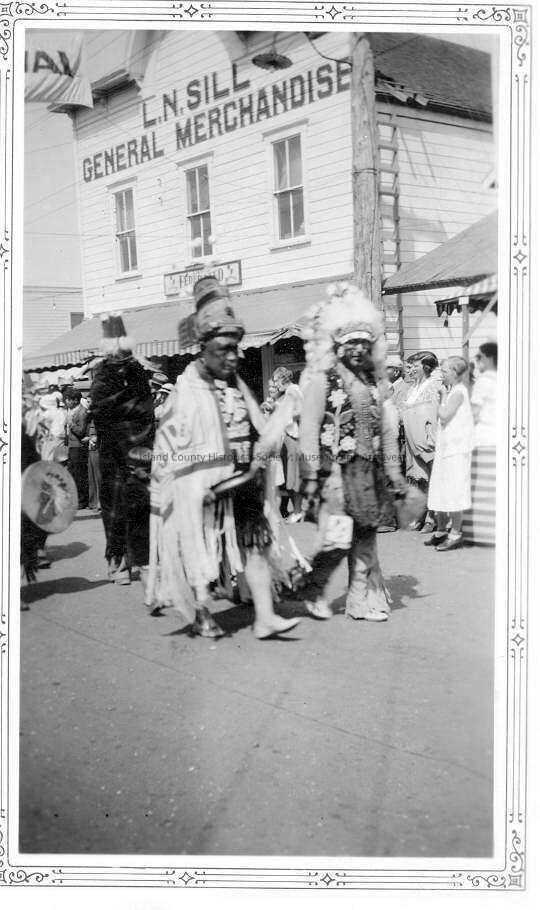 Two Native Americans walking in Coupeville Water Festival parade.