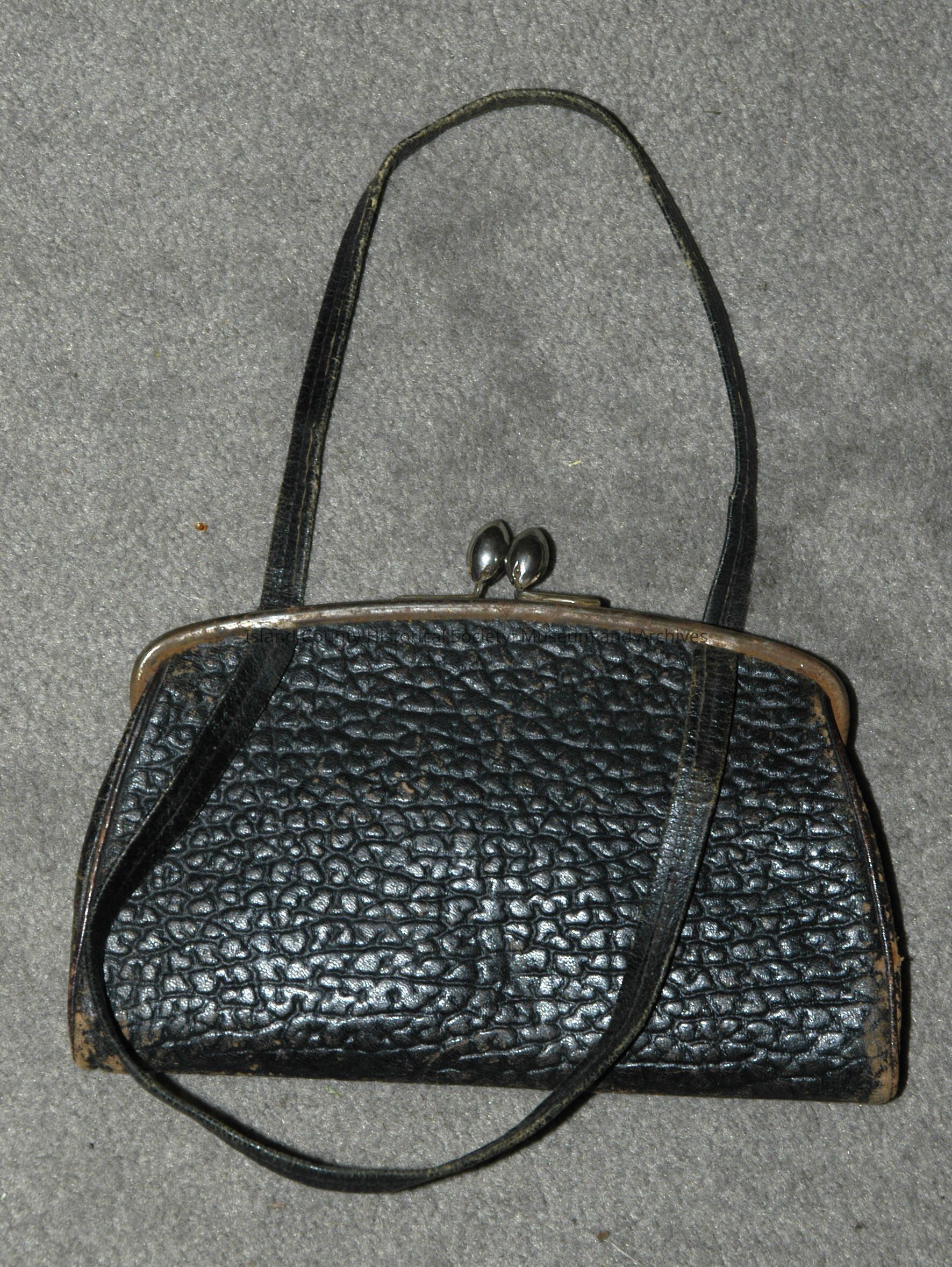 purse with two others inside: 92-1-40a - large leather, black & silver 92-1-40b - small change purse, black leather Accession book states there are two small ones inside - so there should be a C.