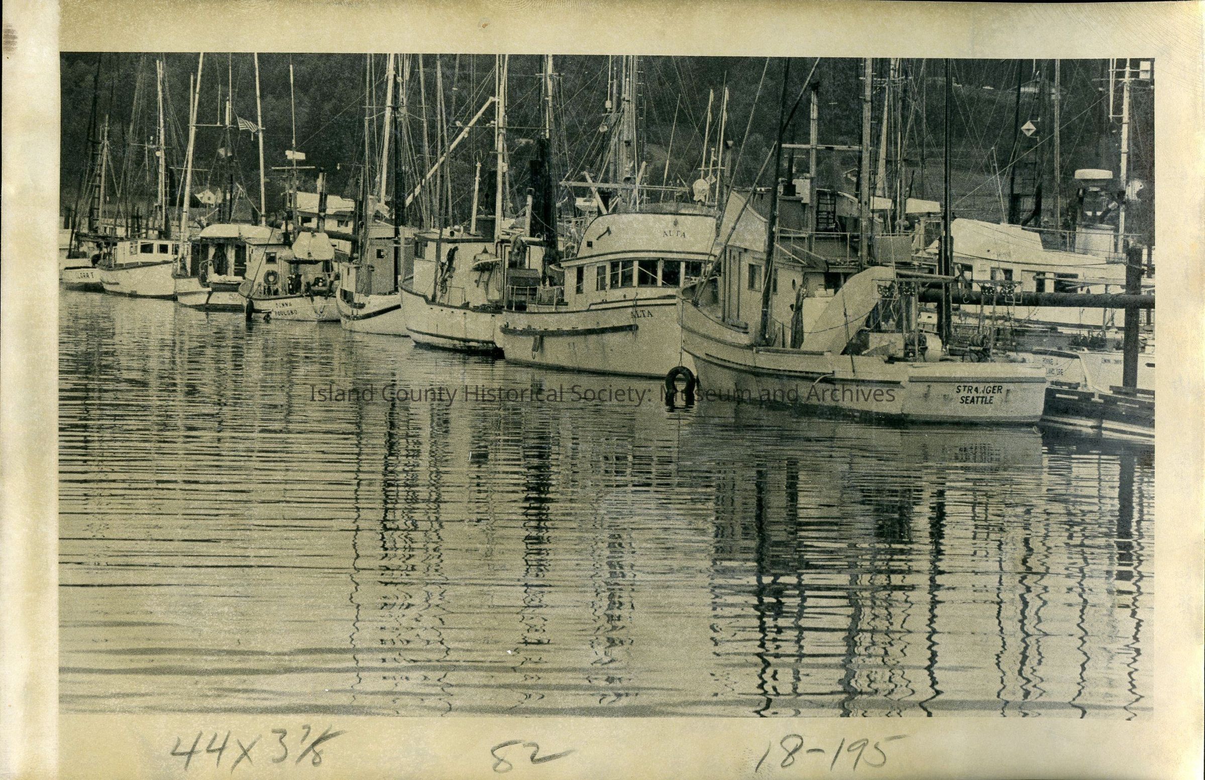 Photograph of a fishing fleet at Poulsbo, Washington. C. 1975.Photograph Details