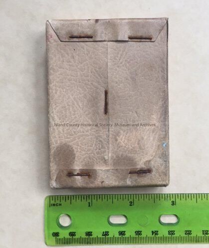 Object was Found In Collection (FIC) with no associated documentation. Object appears to be a novelty trick toy. Measuring 2.5 inches by 3.5 inches by 3/4 inches thick - about the size of a deck of cards - this item is wrapped in a paper covered printed with black ink. Text states: