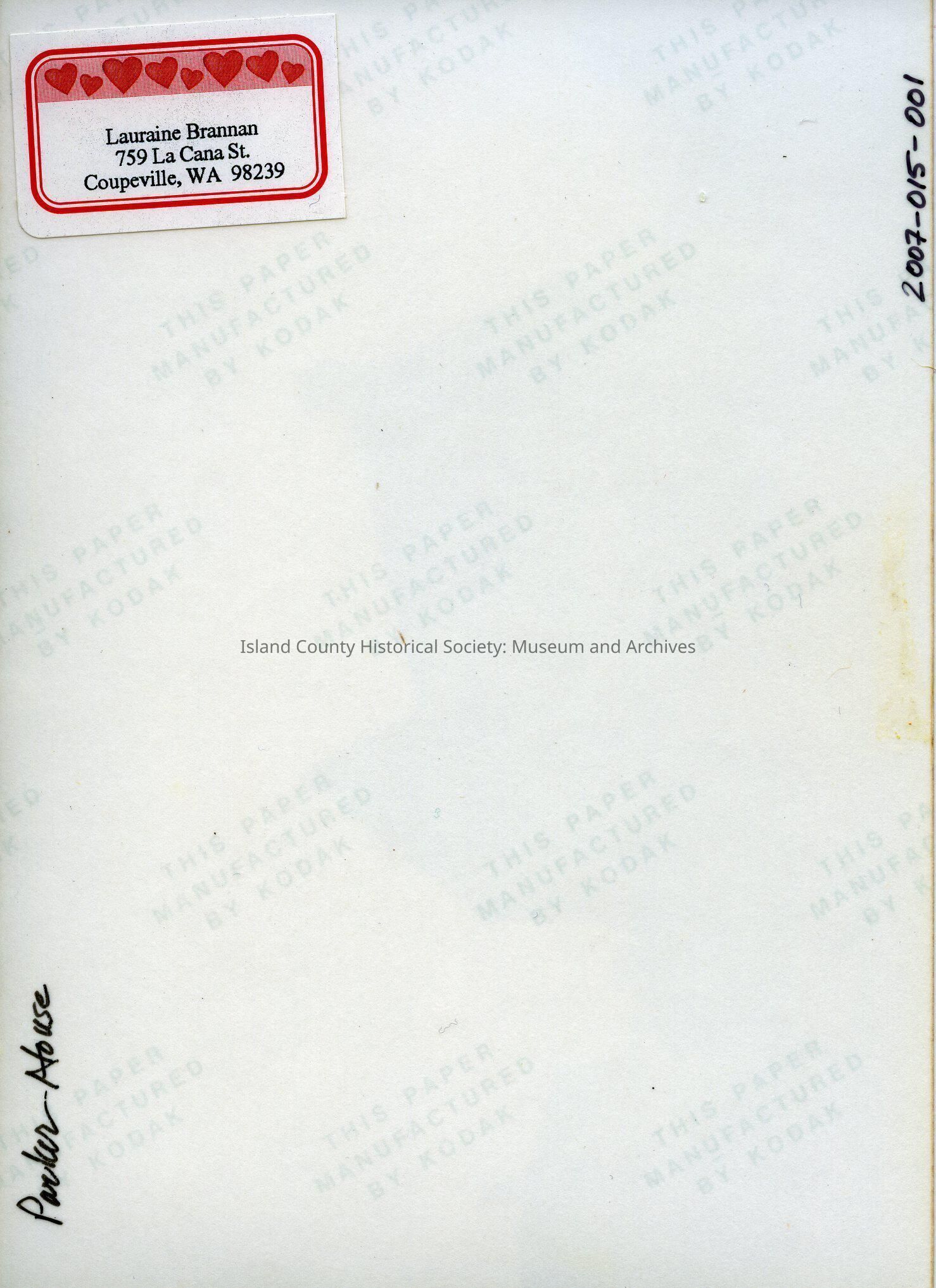 Photograph of house, turret, gable or dormer window, chimney, atrium or sun porch, another building to the right has a mansard roof and chimney. Written on back: "Parker House"Made/Created
