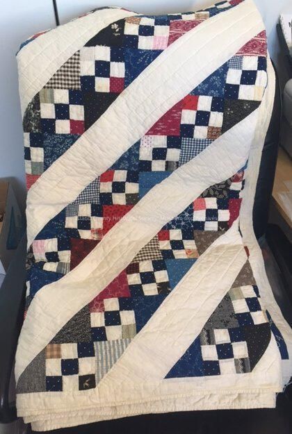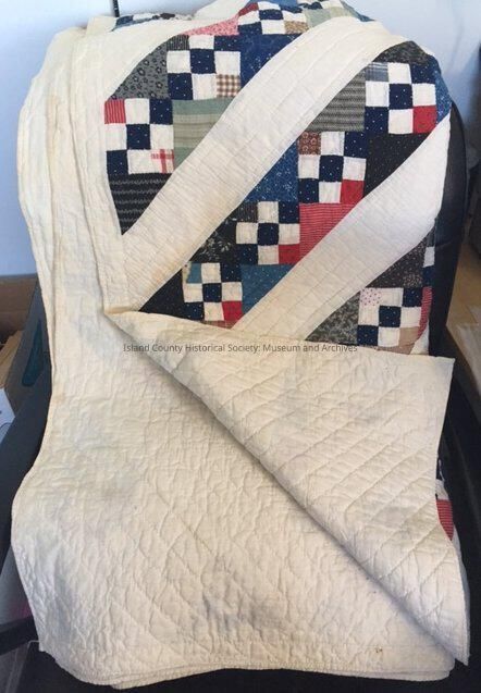 1904 bed quilt made for Viola Edmundson-Garfield (Lillian Huffstettler's cousin) by donors grandmother, Mary L. Dean-Edmundson who was a Coupeville resident from 1904-1946 likely living at 608 NW Broadway.