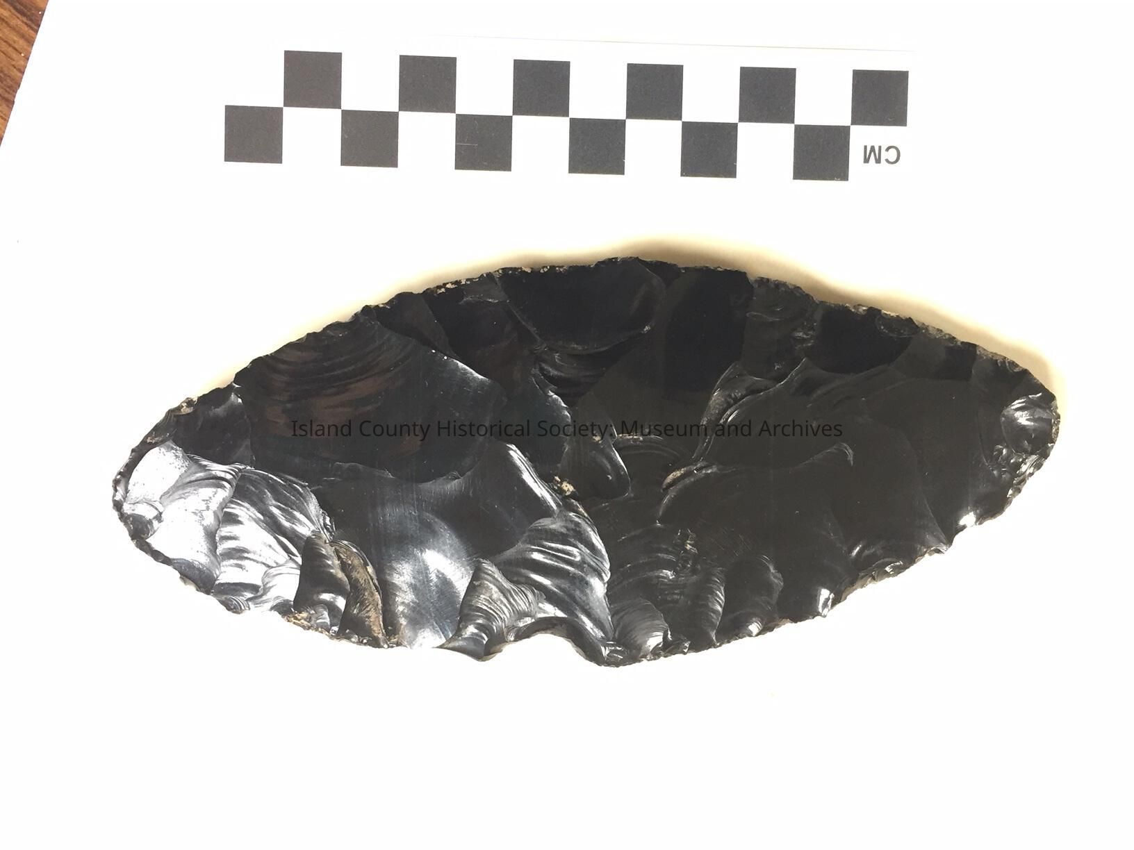 Obsidian projectile point. Found in collection therefore no details available.