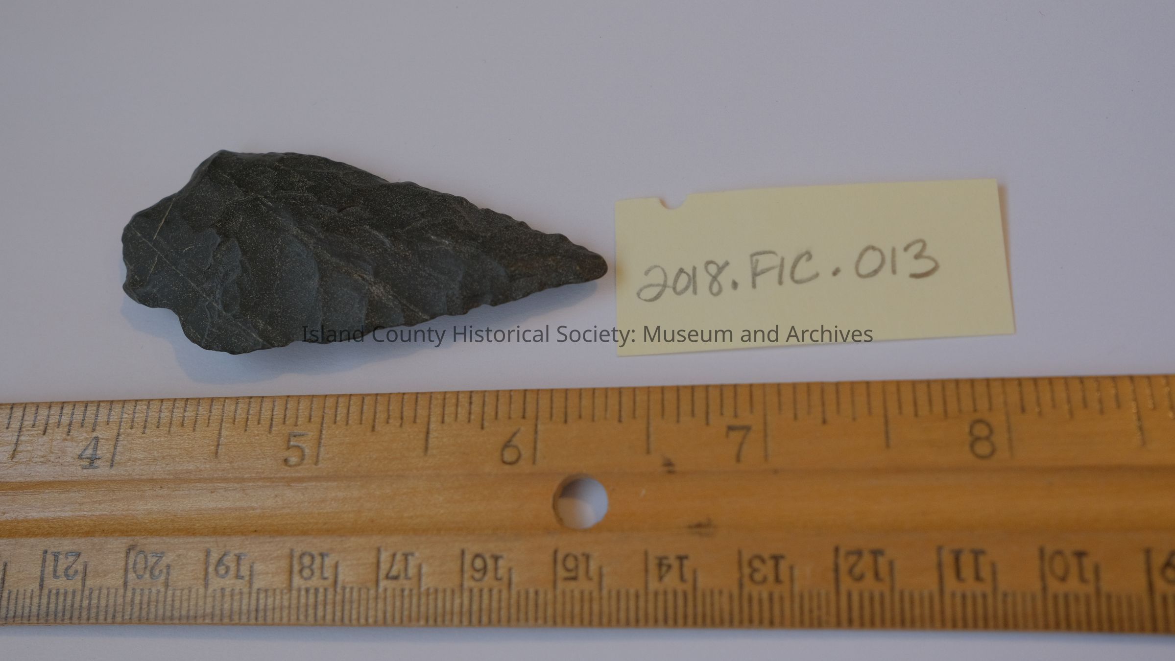 Stone projectile point. Found in collection therefore no details available.