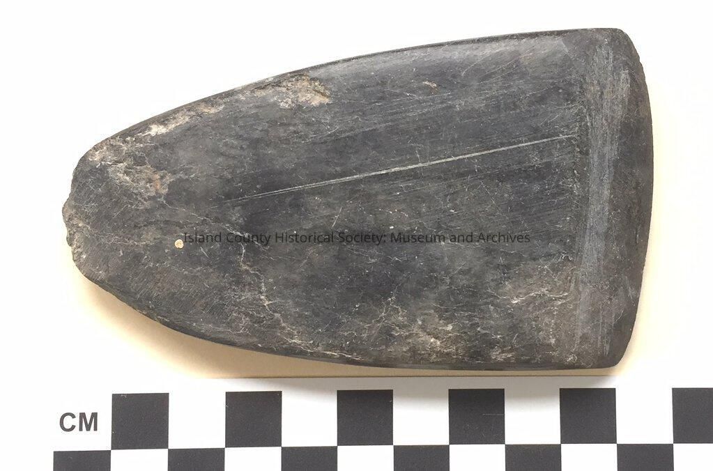 Blade is traingular shaped with some pecking marks at tip and smoothing work at other end.