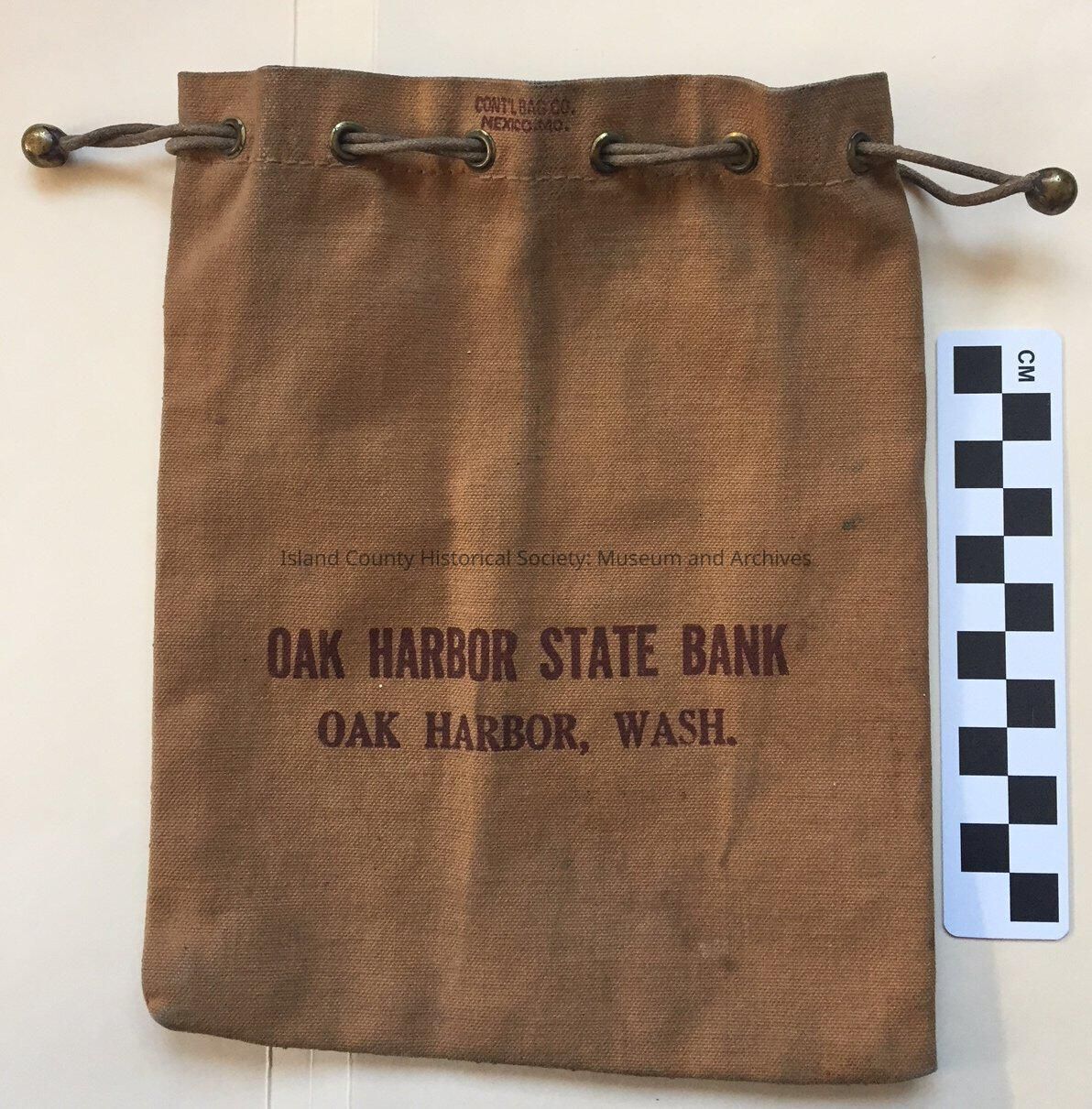 Stamped on one side of bag bag "OAK HARBOR STATE BANK, OAK HARBOR, WASH."
