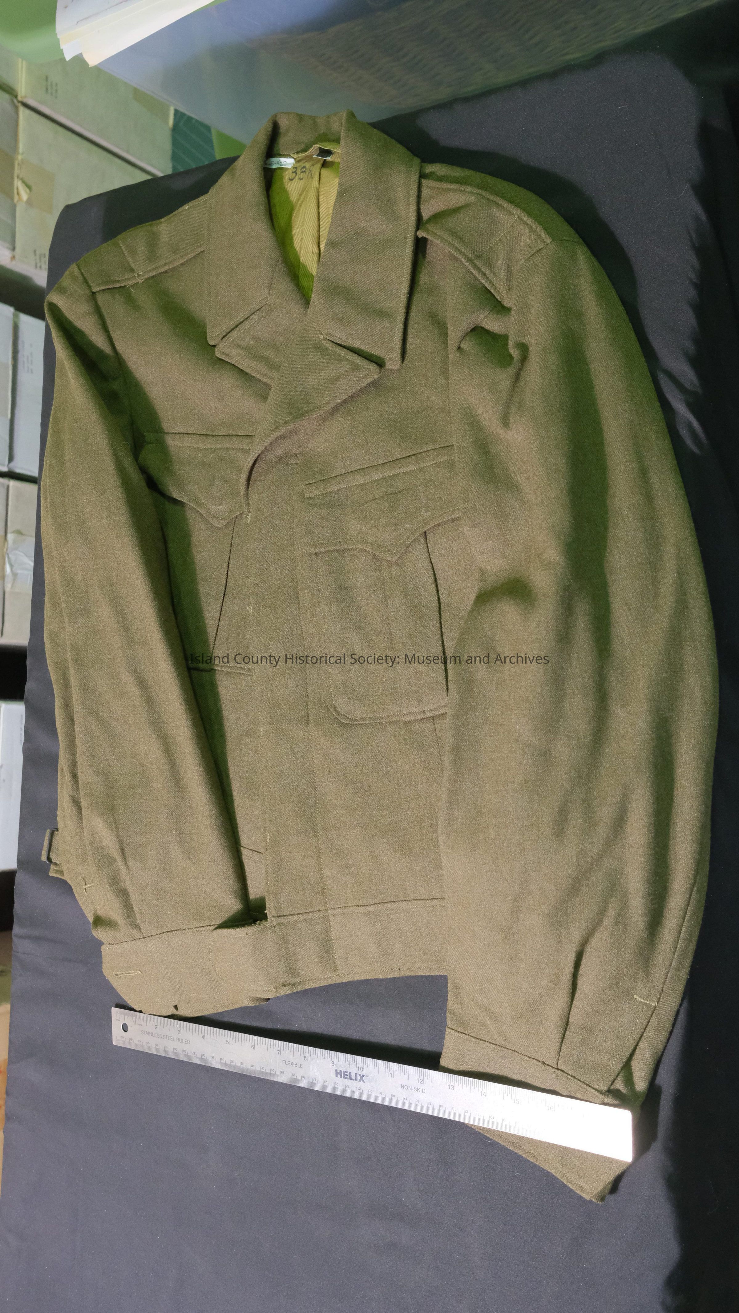 Jacket, World War II, olive drab wool, "Ike", 38R, plain, no insignia, no stripes, Army