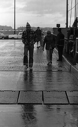 Men boarding a ferry.Made/Created