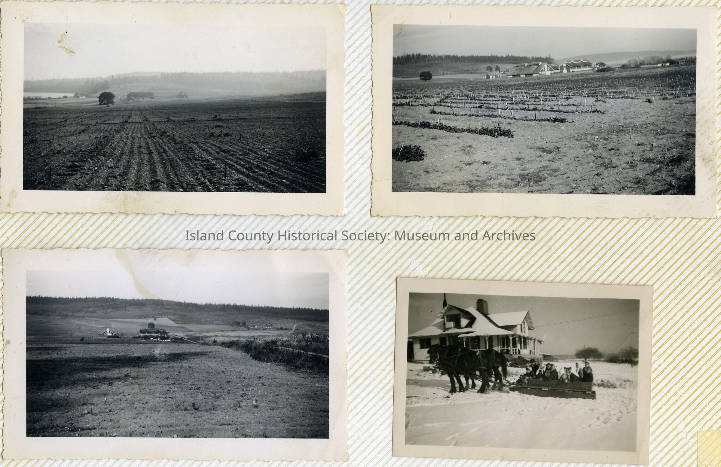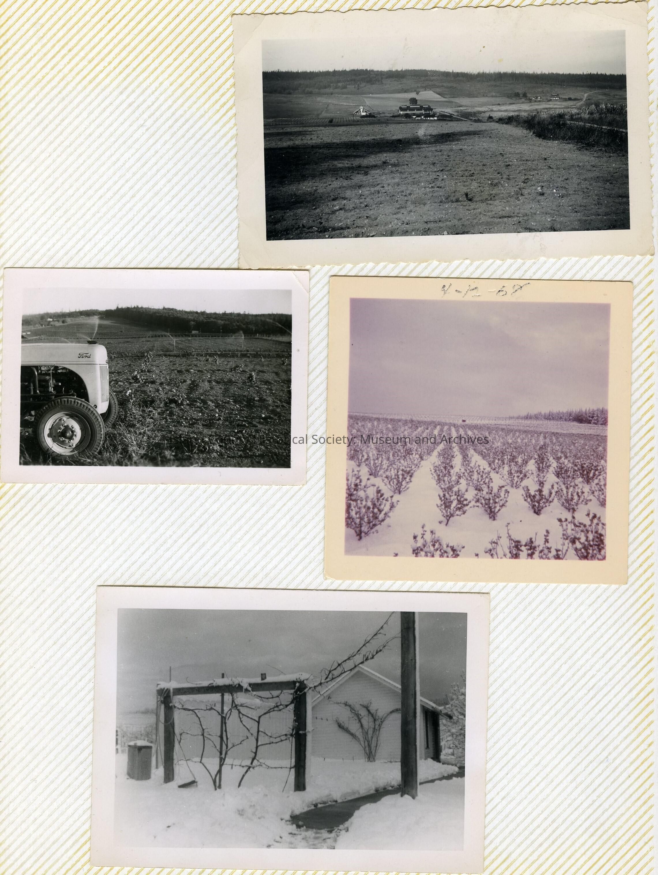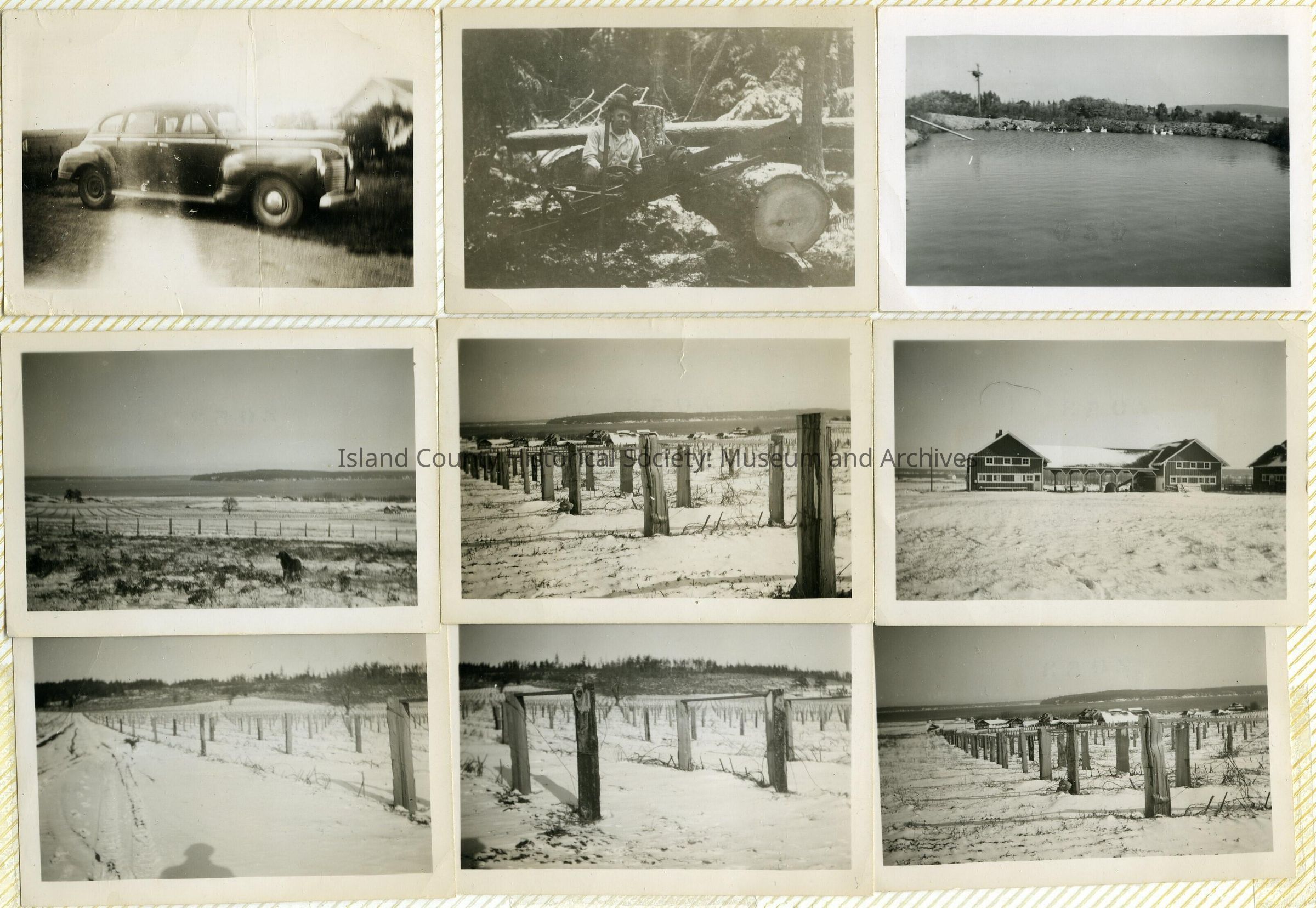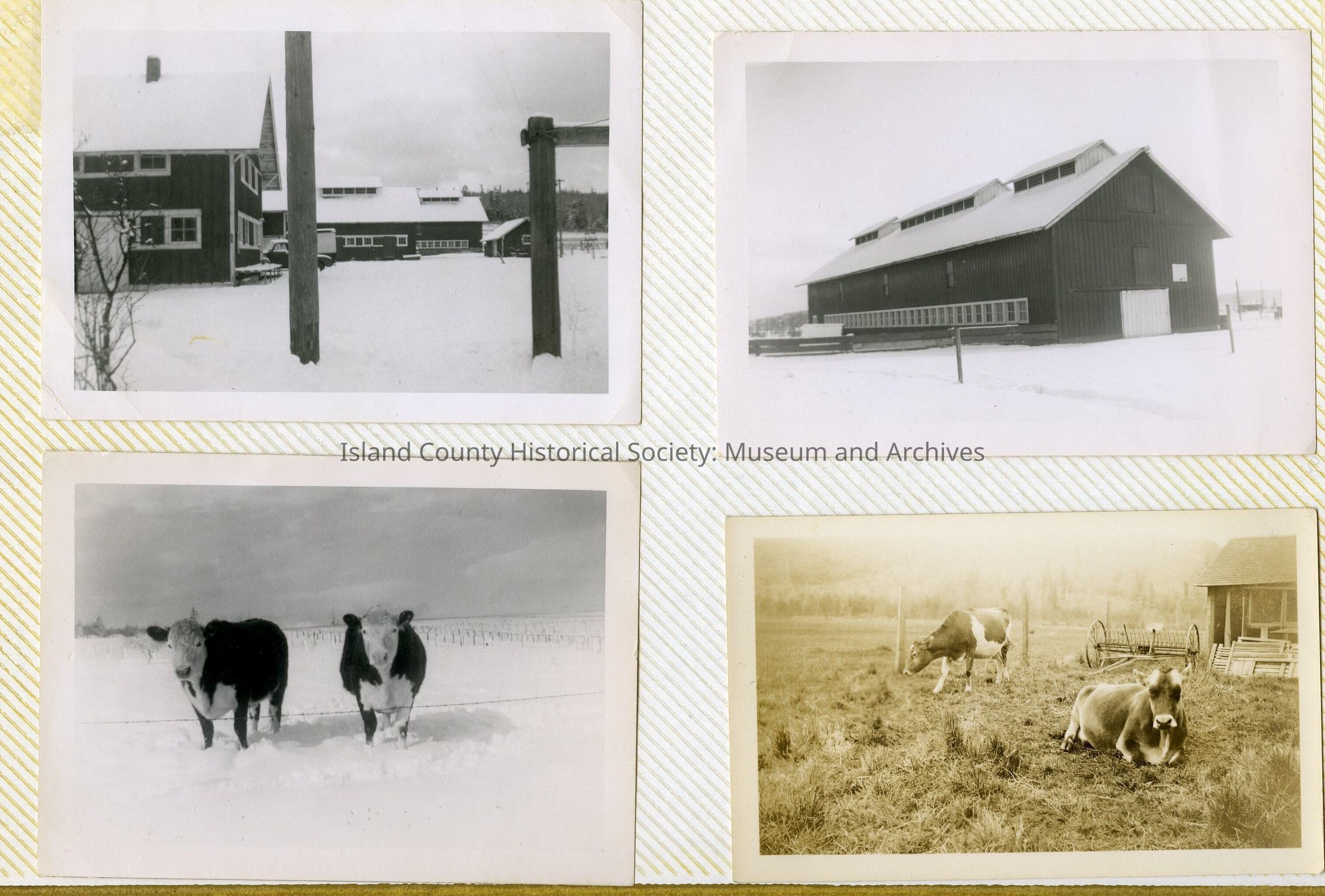 A photo album of photos and a document of Greenbank. All the photos and the document are scanned and in a folder: PHOTO database/2020.014.JohnSinemaAlbum. The album and document have been returned to John Sinema. Includes farm, cows, aerial views, scenes, people, etc.Collection