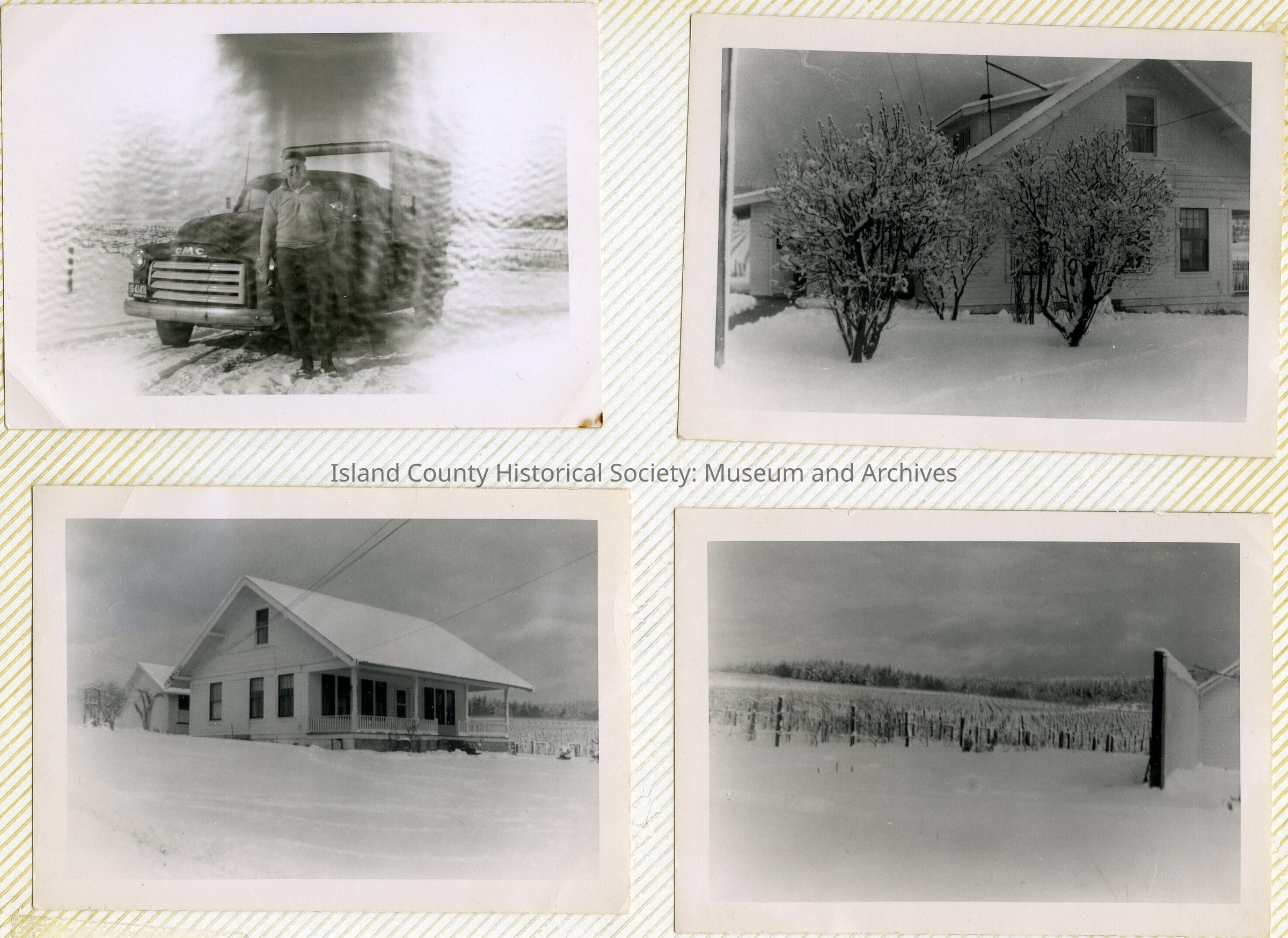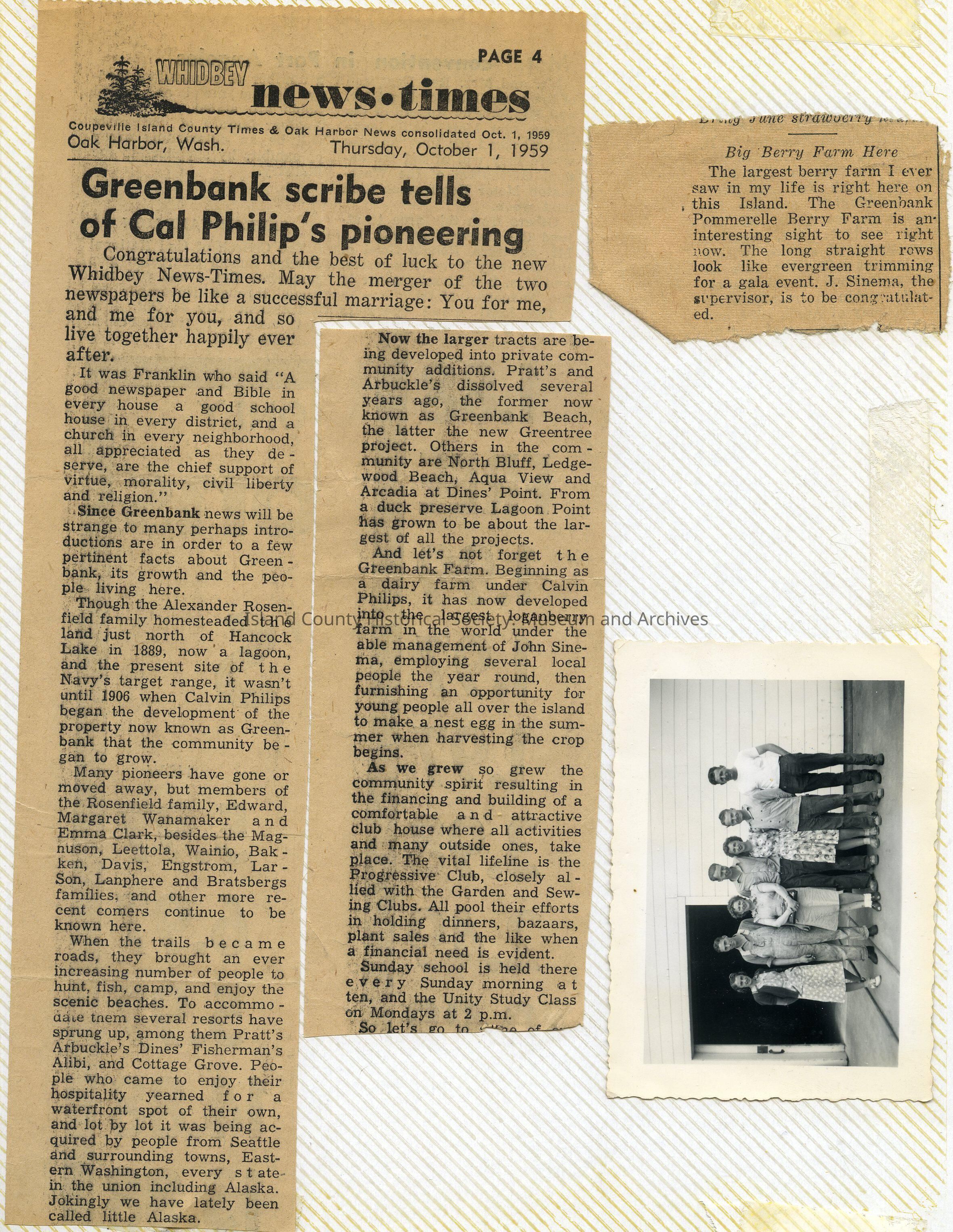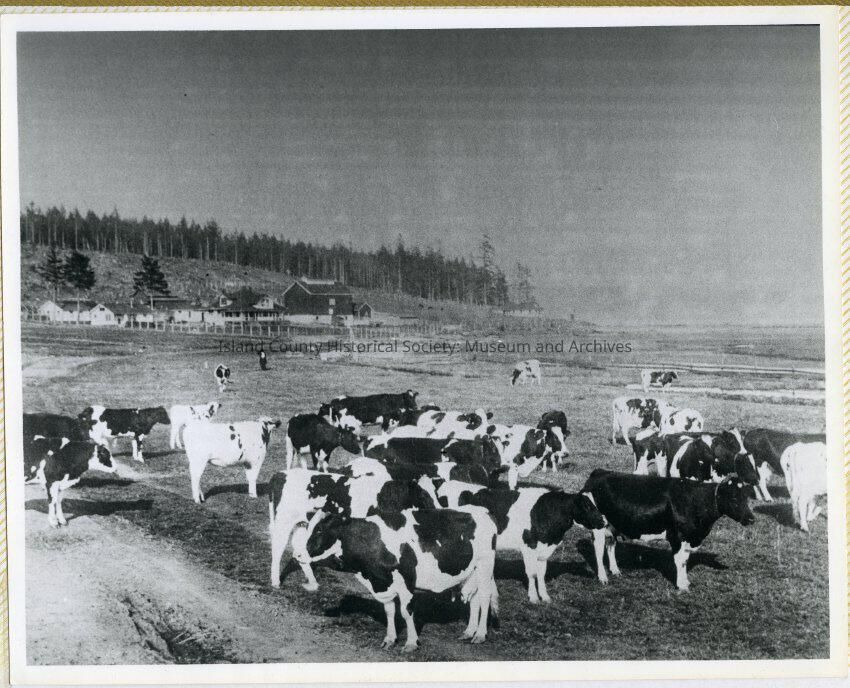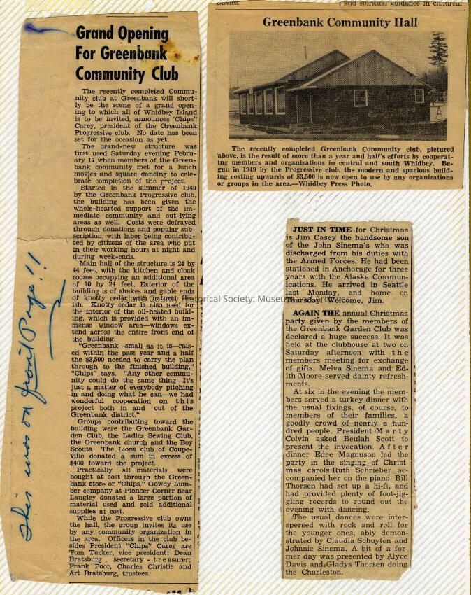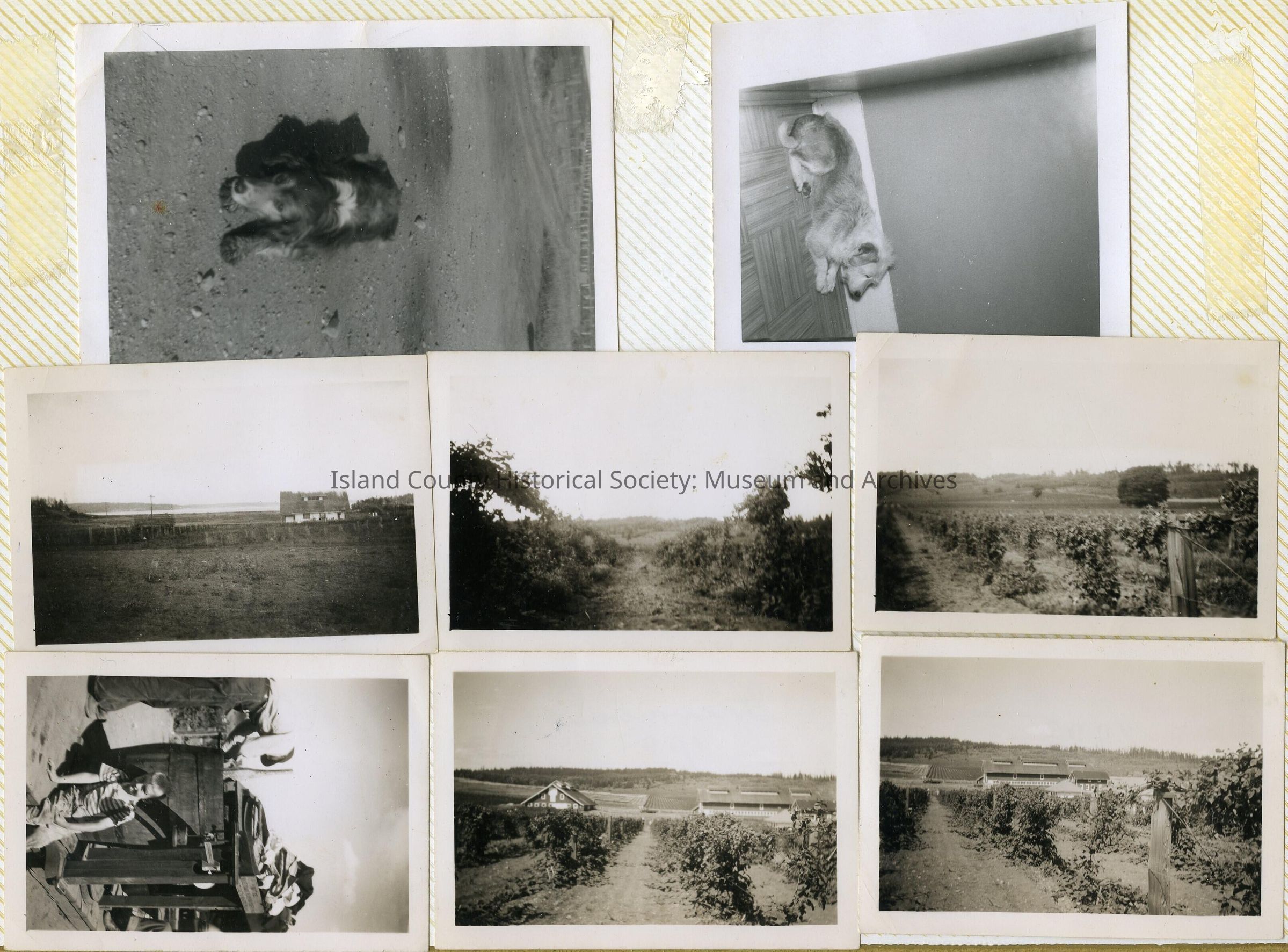 A photo album of photos and a document of Greenbank. All the photos and the document are scanned and in a folder: PHOTO database/2020.014.JohnSinemaAlbum. The album and document have been returned to John Sinema. Includes farm, cows, aerial views, scenes, people, etc.Collection