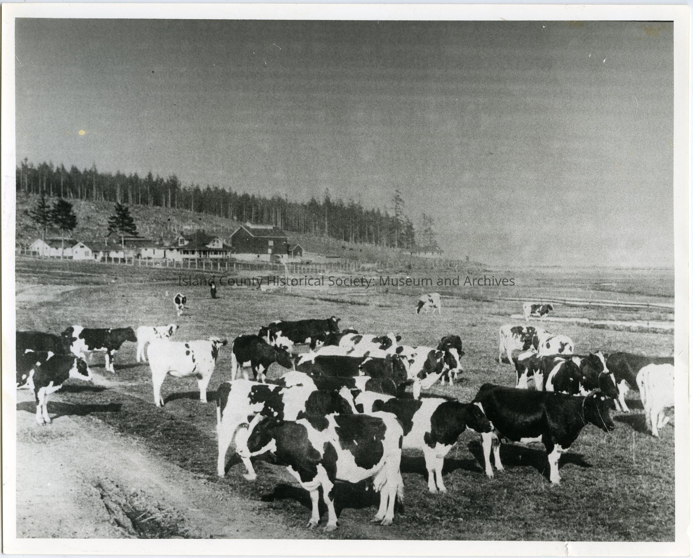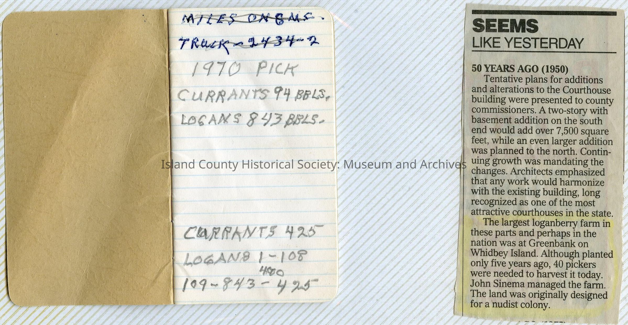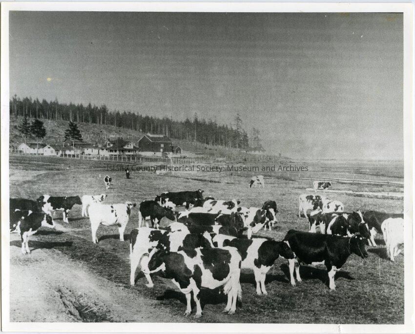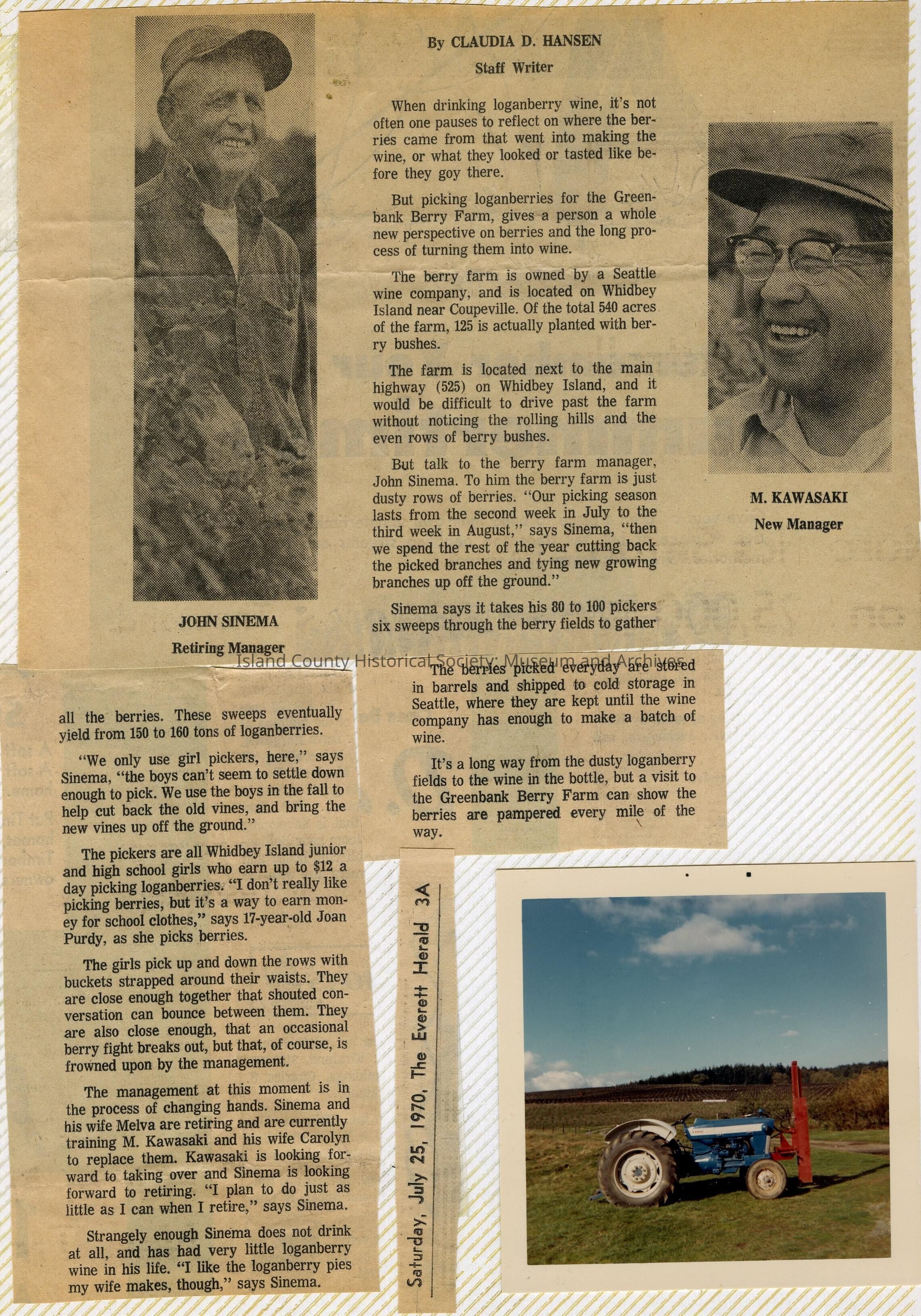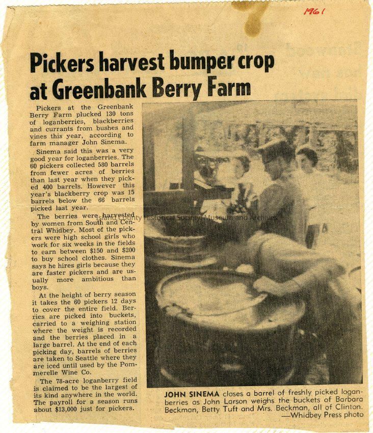 A photo album of photos and a document of Greenbank. All the photos and the document are scanned and in a folder: PHOTO database/2020.014.JohnSinemaAlbum. The album and document have been returned to John Sinema. Includes farm, cows, aerial views, scenes, people, etc.Collection