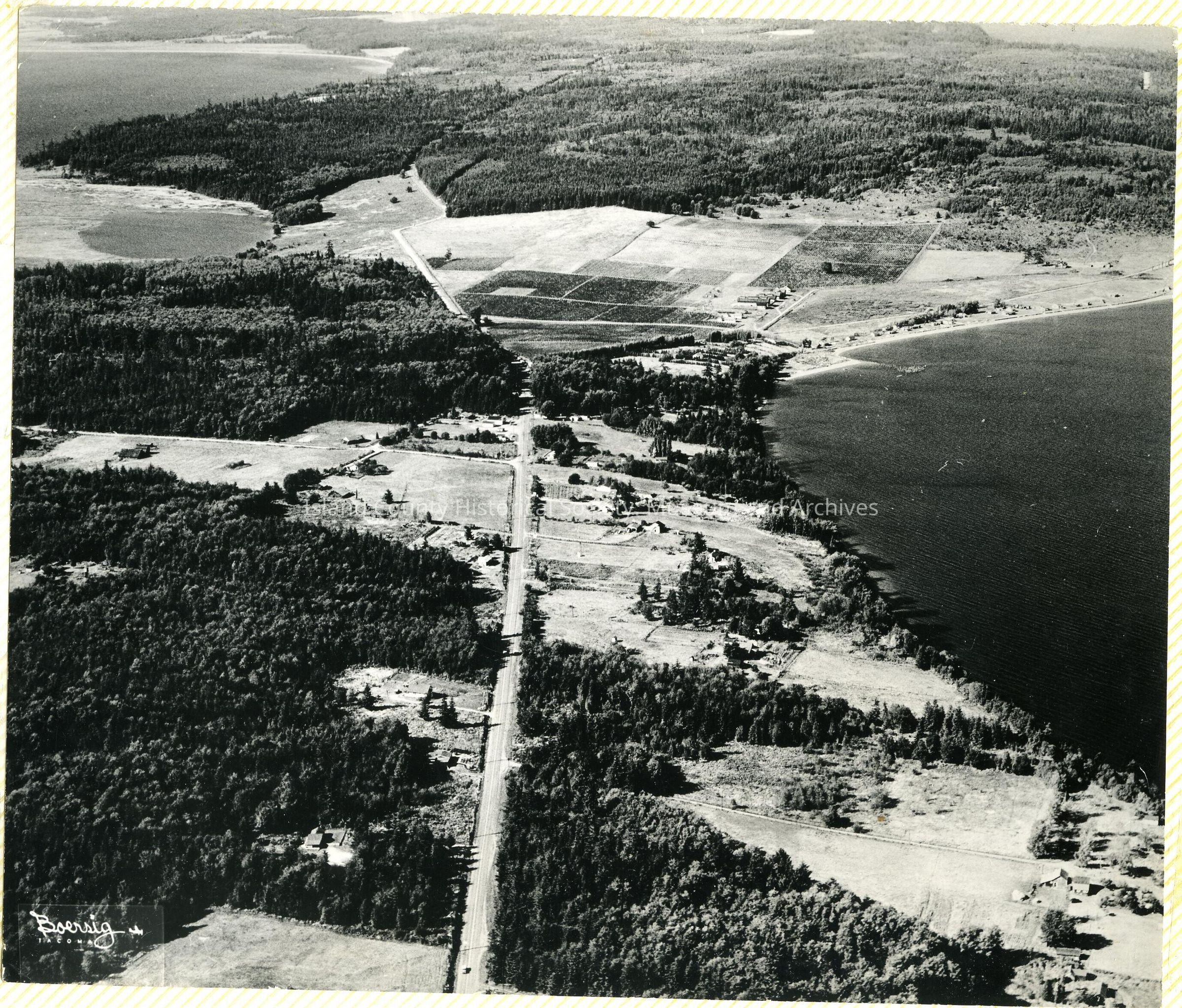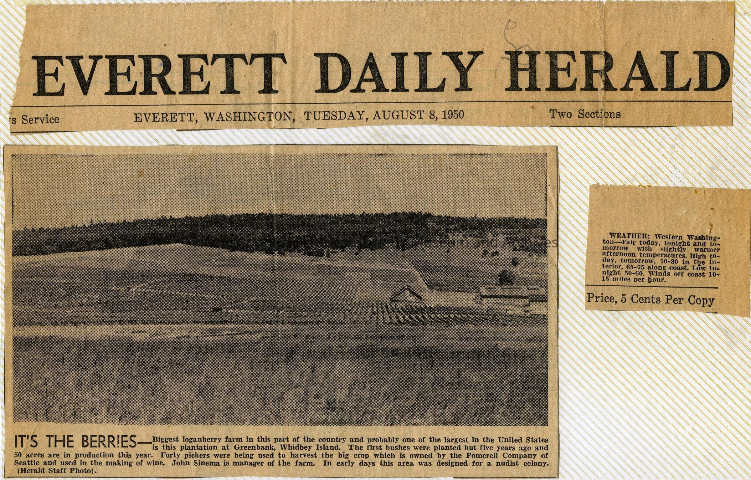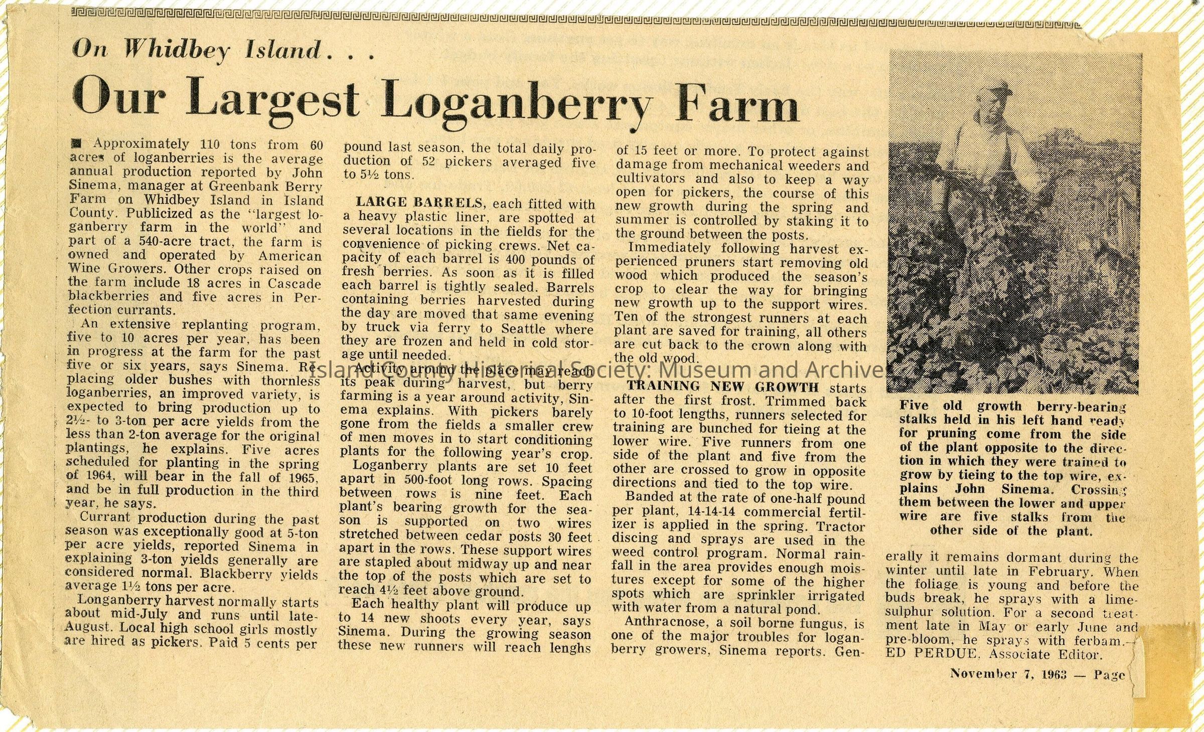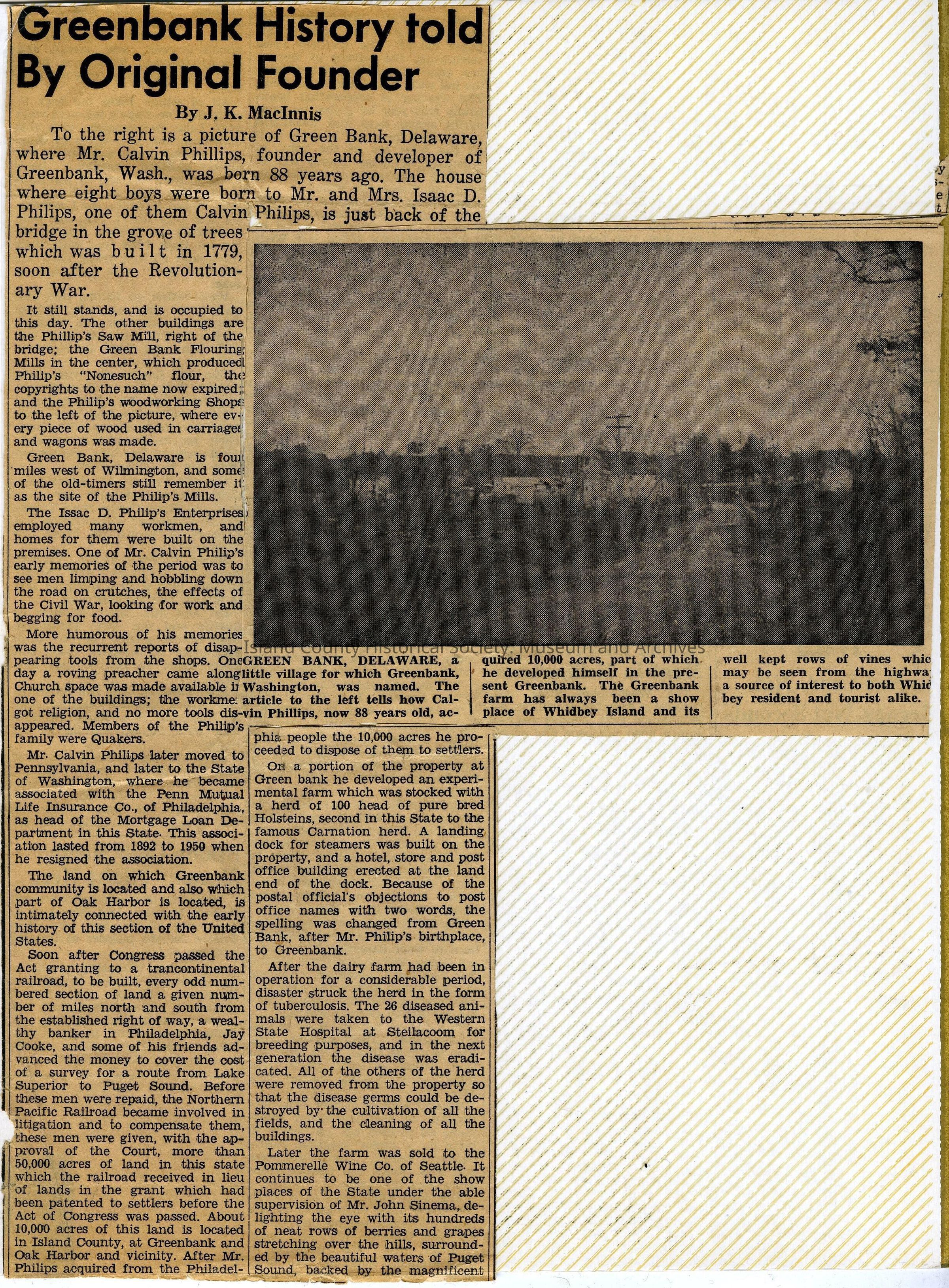A photo album of photos and a document of Greenbank. All the photos and the document are scanned and in a folder: PHOTO database/2020.014.JohnSinemaAlbum. The album and document have been returned to John Sinema. Includes farm, cows, aerial views, scenes, people, etc.Collection