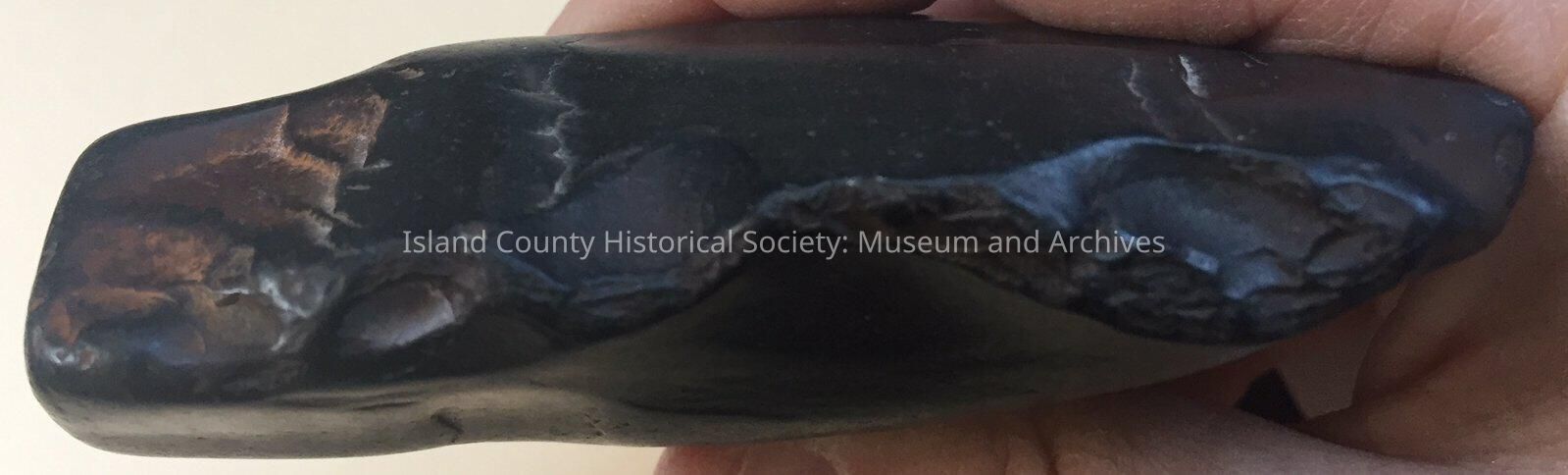 Dark, smooth stone with with some evidence of being worked - pock marks & gouges.Lexicon