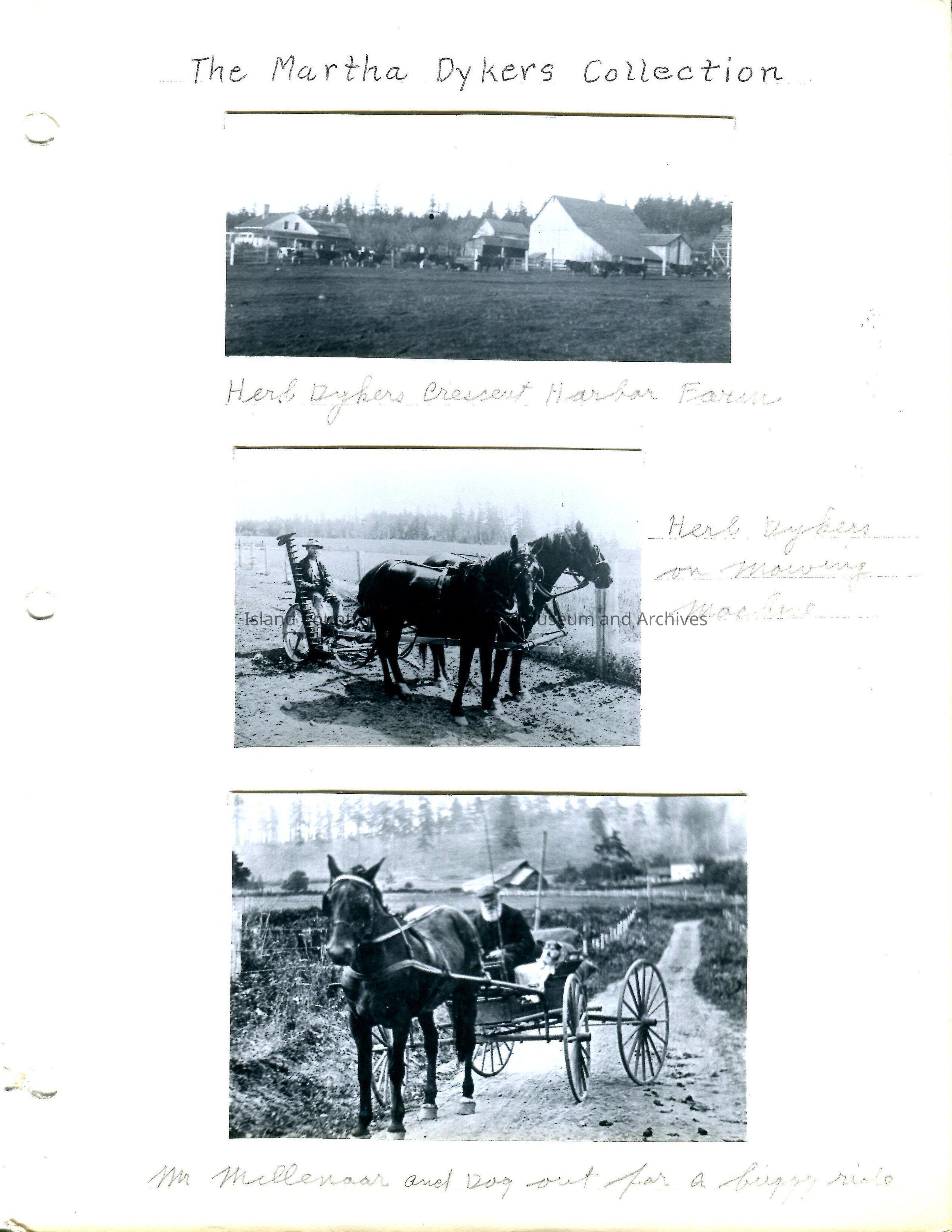 Middle Photo - 3.5"W X 2.75"H - Photo of Herb Dykers on a mowing machine. There are two horses pulling the maching. No date.