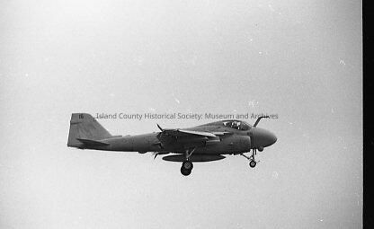 Military airplane flying probably over Keystone Ferry.Made/Created