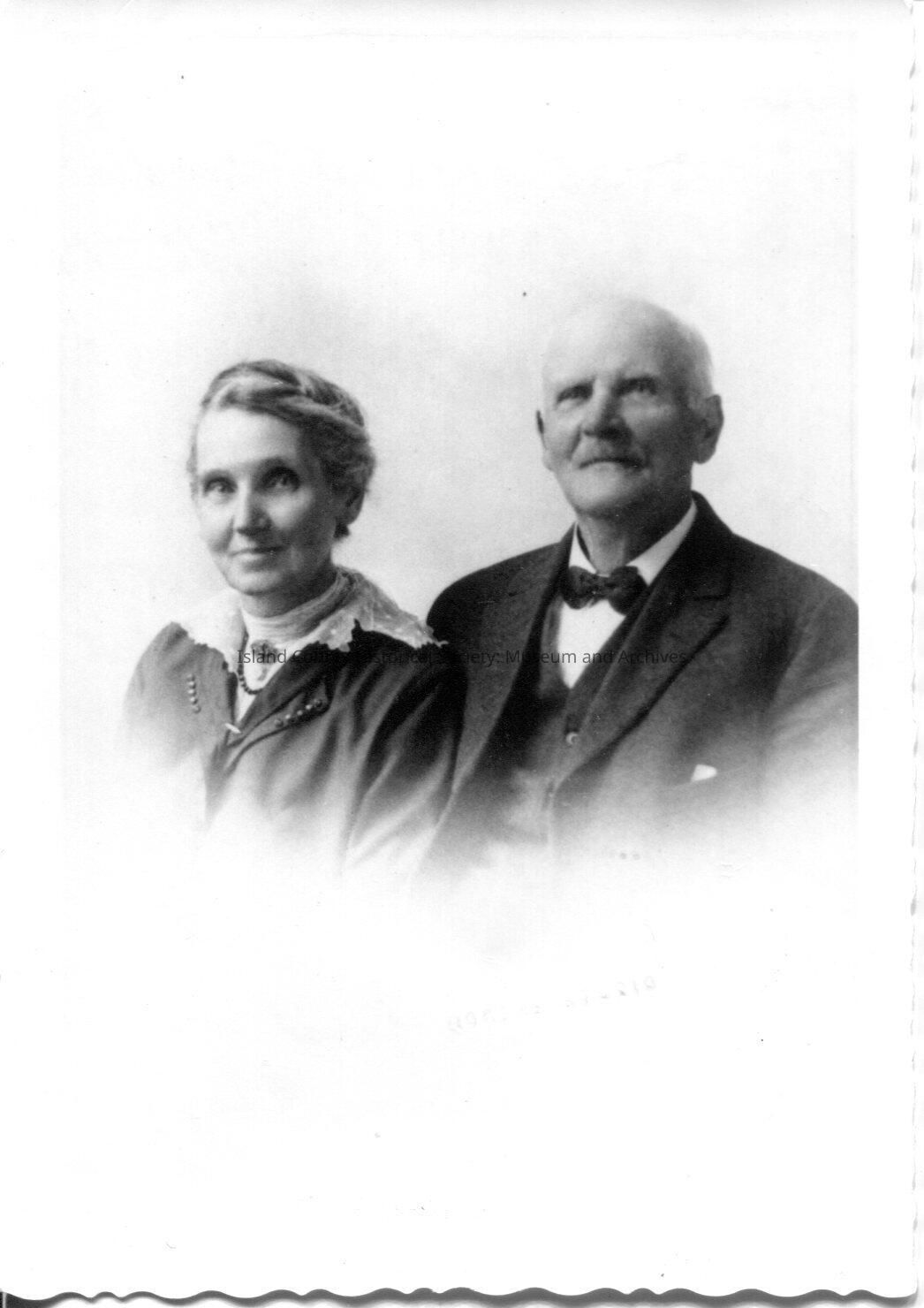 This is a black and white photo of Charles Terry and Emma Comstock. Written on the back of this image is Charles Townsend Terry b Feb.26, 1835 at Geddes, N.Y d. July 6, 1922 Coupeville, WA married Emma Comstock Dec.10, 1884. She was born August 30, 1857at Palo, Michigan and dies Oct.11, 1922 at Coupeville, WA. Charles Terry's first wife was Georgie Pearson they were married on 1866 and she died in 1881.Lexicon