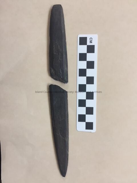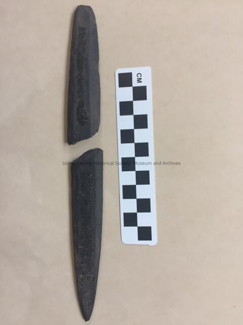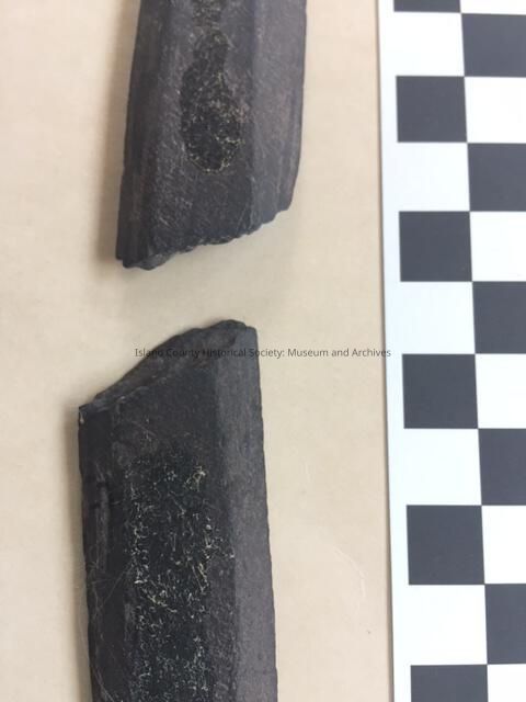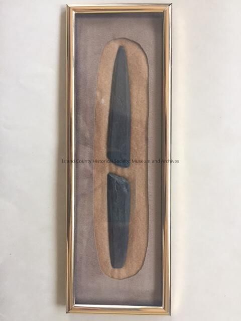 "Found by Bill Van Wieringer while plowing a field of the Power farm in San De Fuca, WA somtime in late 1920's or early 1930's. Both pieces were found the same day in the same field about 20 feet apart. The field is the one west of the Power house and west of the ditch with water running south to Penn Cove."Lexicon