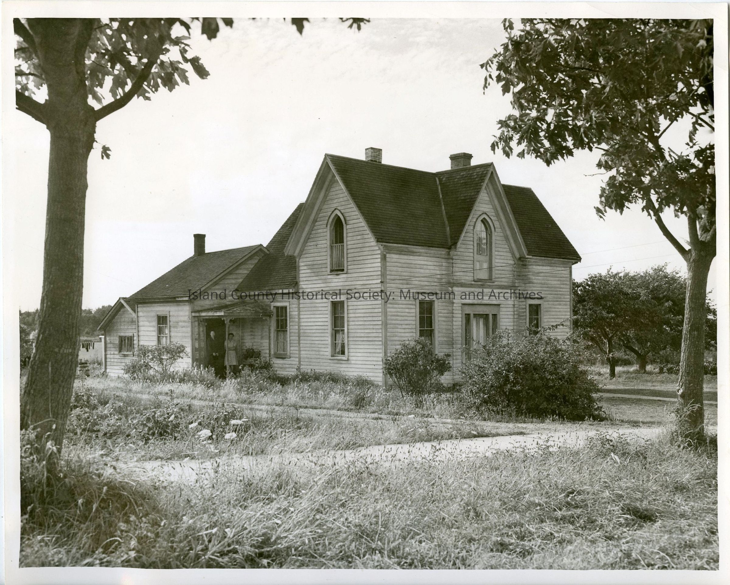 Photograph of the Calvin Libbey house. A handwritten note on the reverse of the photo (not written by Roger Sherman) reads, "Calvin Libbey House, Coupeville, built by John Alexander Jr. in early 1860s and sold to Sam Libbey, pioneer."