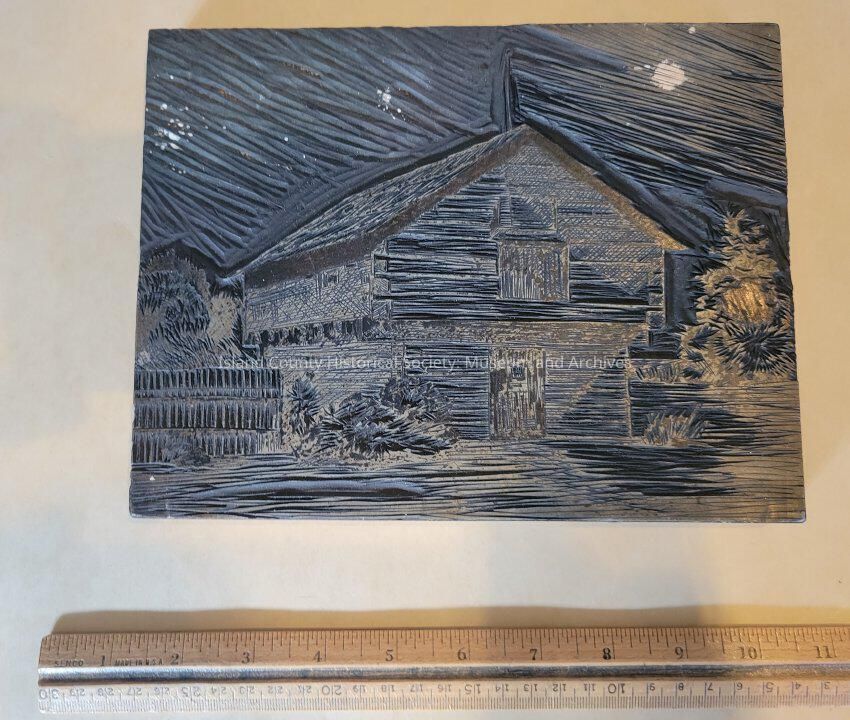 Carved Linoleum Block of the Alexander Blockhouse (Large)