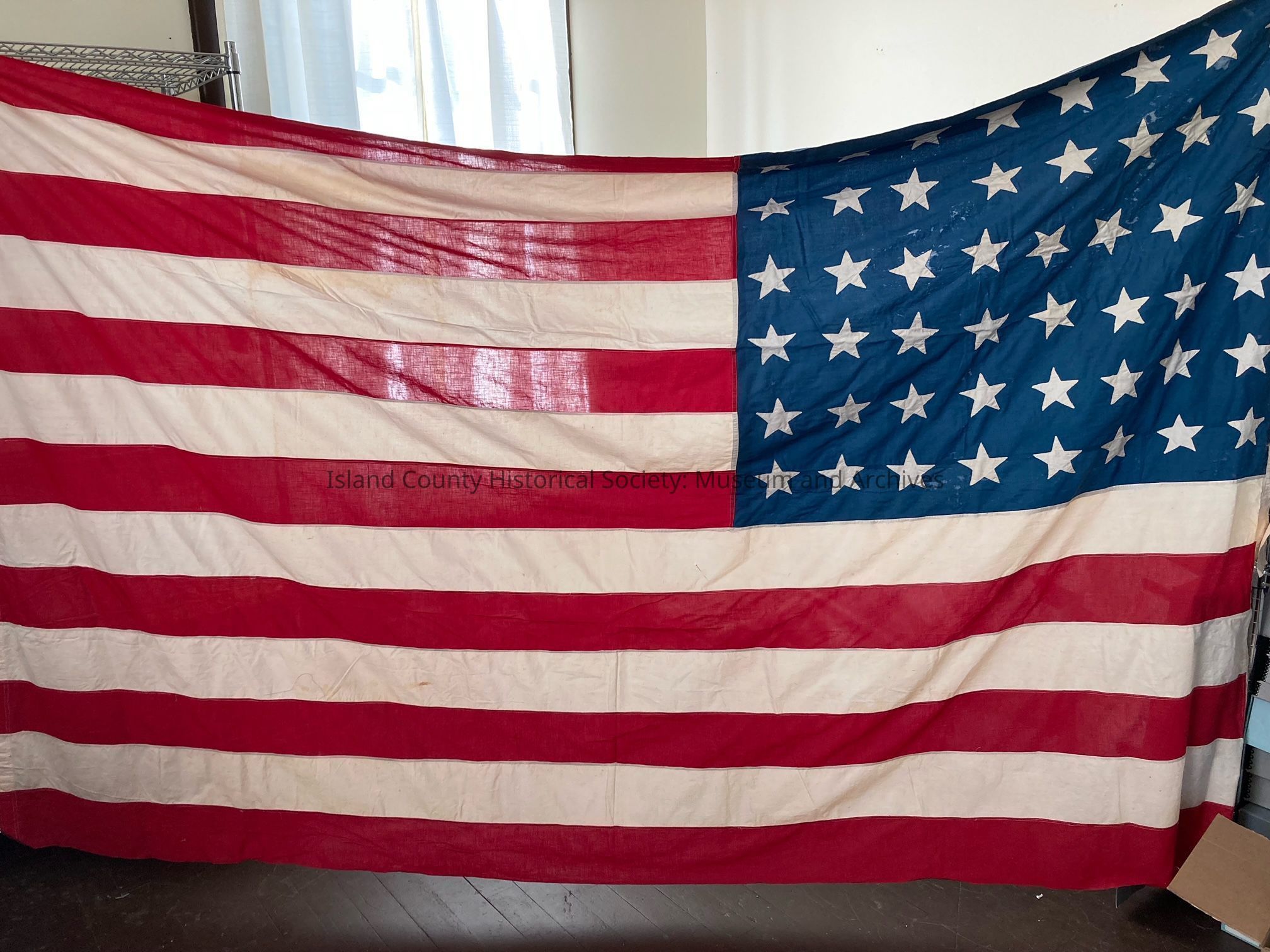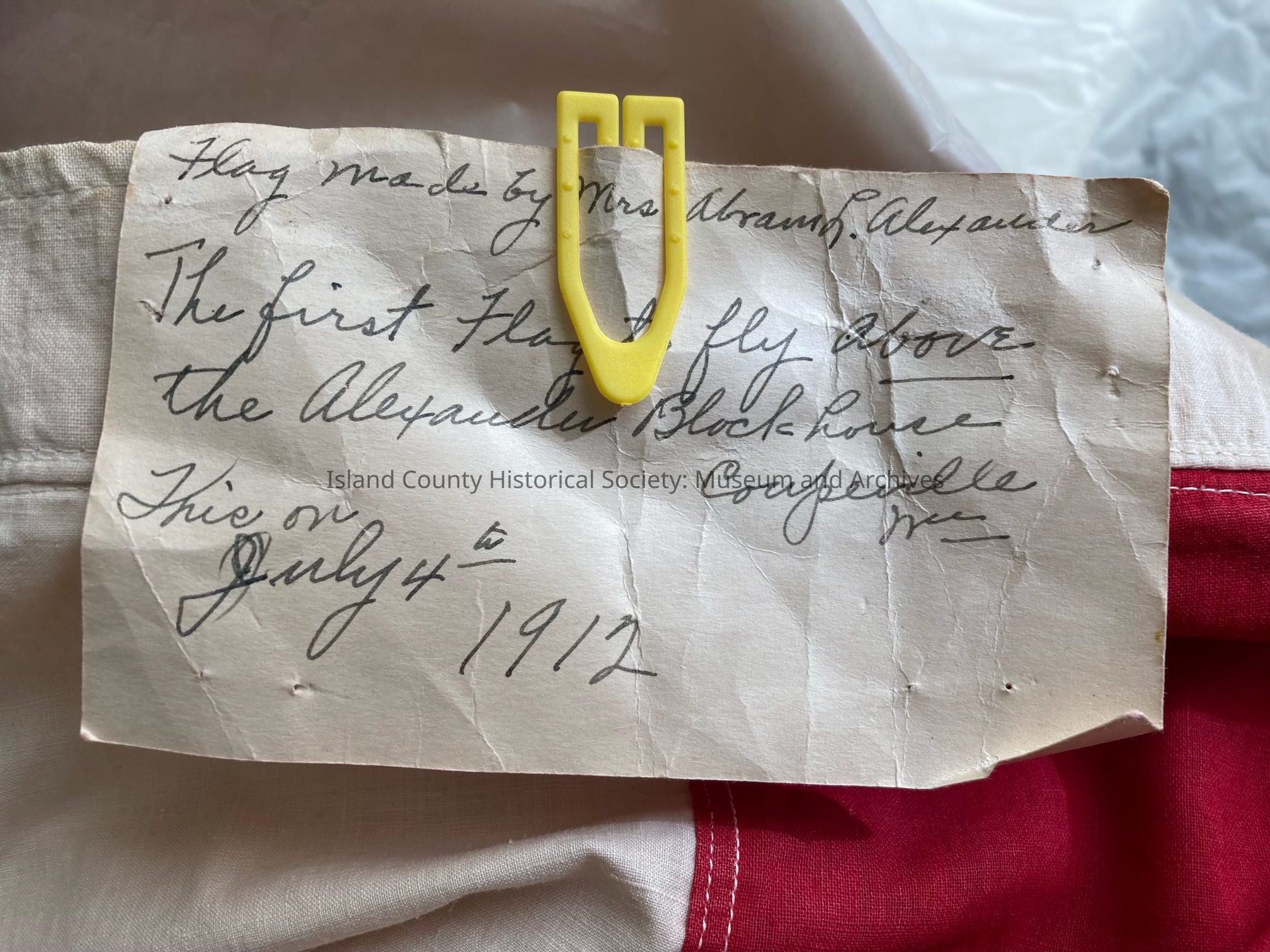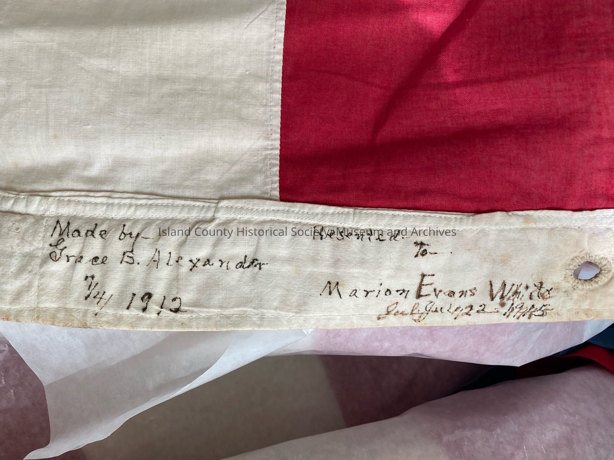flag made by Mrs. Abram L. Alexander, the first flag to fly above the Alexander Blockhouse