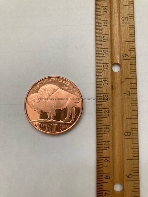 Copper coin w/ Native American on front and bison on back