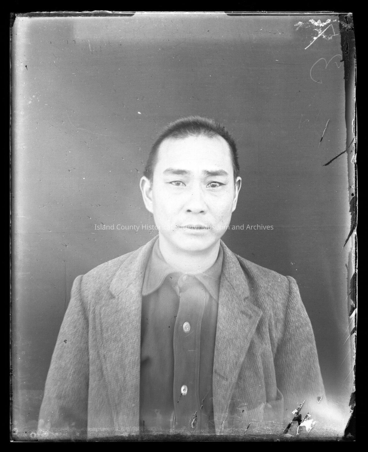 Photo of an Asian man wearing a heavy shirt and jacket. Looks like 37 (backwards) is scratched in the top right corner.Made/Created