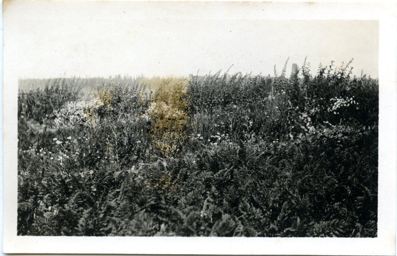 Black and white photo of flower garden. Back reads: George Lang. Harry Lang.
