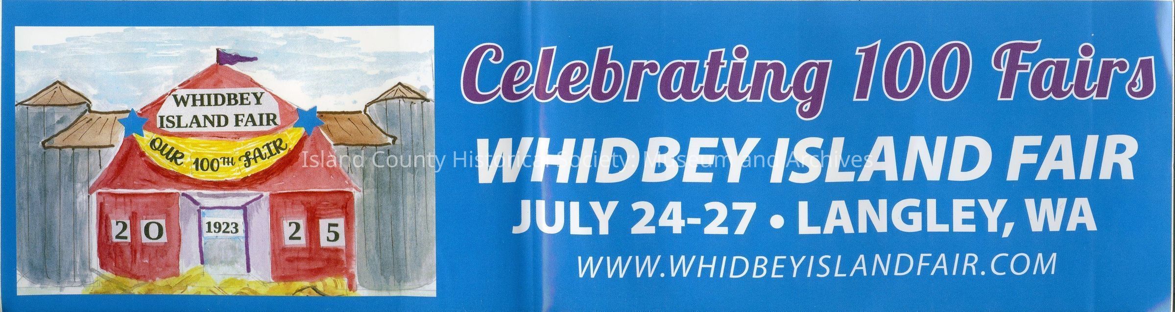 A bumper sticker from the 100th Whidbey Island Fair - July 24-27, 2025