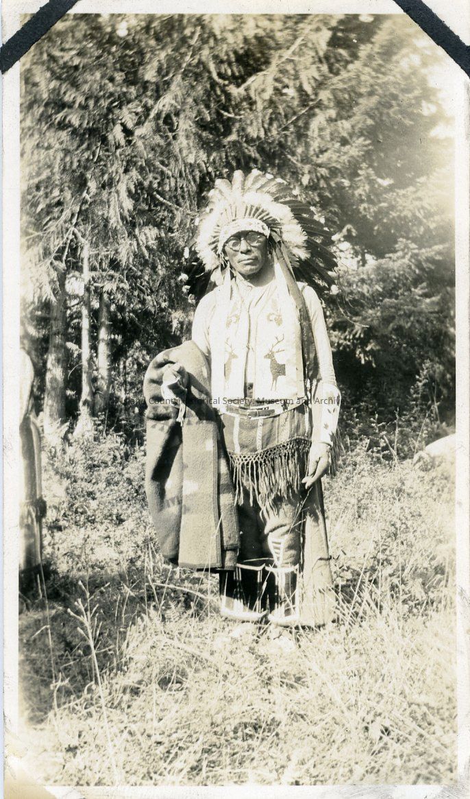 Chief William Shelton wearing a Plains tribe's headdressPhotograph Details