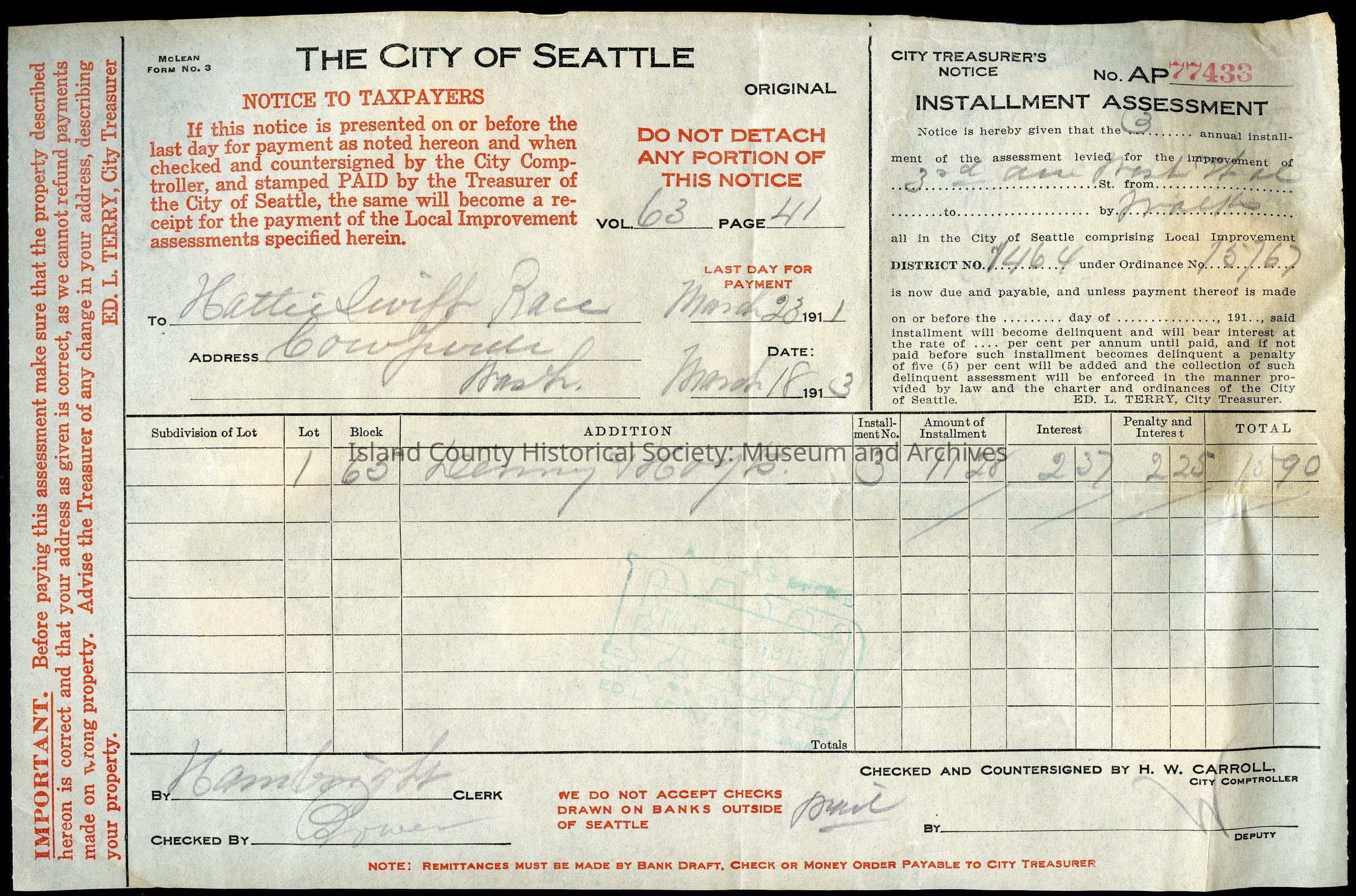 2025.FIC.014, 2025.FIC.015, 2025.FIC.016, 2025.FIC.017 (Payment cards related to the payment receipts). 2025.FIC.026 (Payment receipt dated 1915), 2025.FIC.025 (Payment receipt dated 1914), 2025.FIC.027 (Payment receipt dated 1913), 2025.FIC.018 (Payment receipts dated 1909 and 1910), 2025.FIC.019 (taxpayer notice dated 1912), 2025.FIC.024 (taxpayer notice dated 1913), 2025.FIC.023 (taxpayer notice dated 1913), 2025.FIC.022 (taxpayer notice dated 1915), 2025.FIC.021 (taxpayer notice dated 1913)
