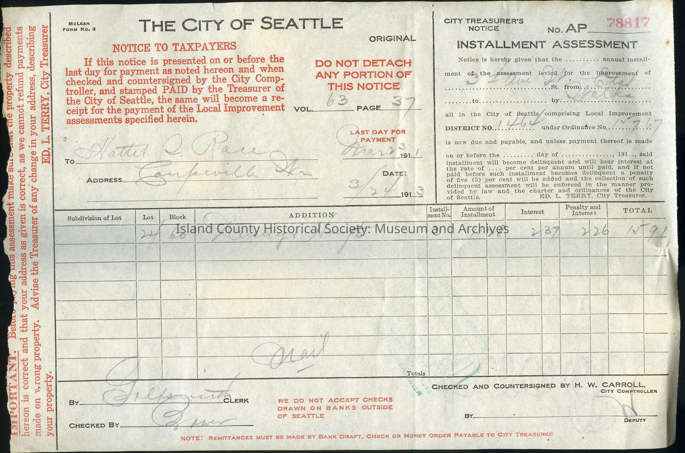 2025.FIC.014, 2025.FIC.015, 2025.FIC.016, 2025.FIC.017 (Payment cards related to the payment receipts). 2025.FIC.026 (Payment receipt dated 1915), 2025.FIC.025 (Payment receipt dated 1914), 2025.FIC.027 (Payment receipt dated 1913), 2025.FIC.018 (Payment receipts dated 1909 and 1910), 2025.FIC.019 (taxpayer notice dated 1912), 2025.FIC.024 (taxpayer notice dated 1913), 2025.FIC.023 (taxpayer notice dated 1913), 2025.FIC.022 (taxpayer notice dated 1915)