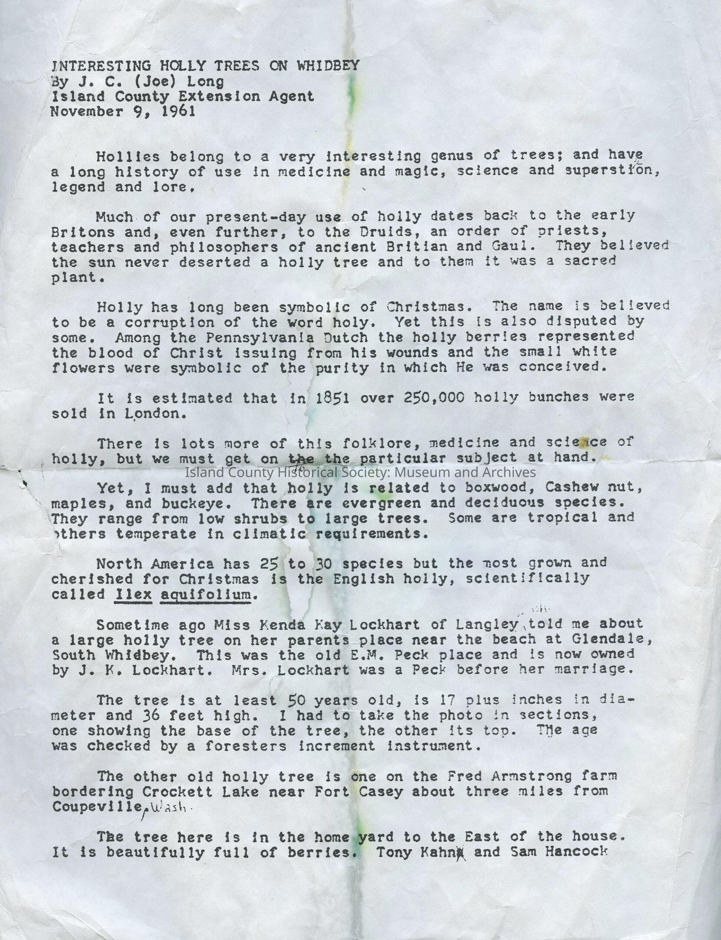 Holly Trees on Whidbey Island