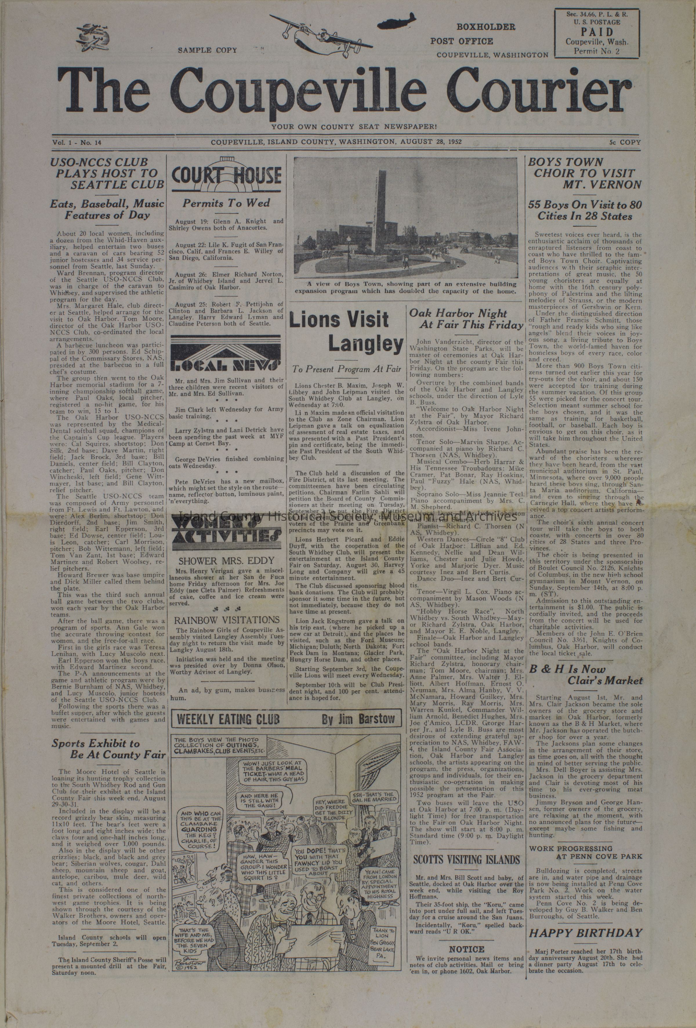 Coupeville Courier, August 28, 1952Entry/Object ID