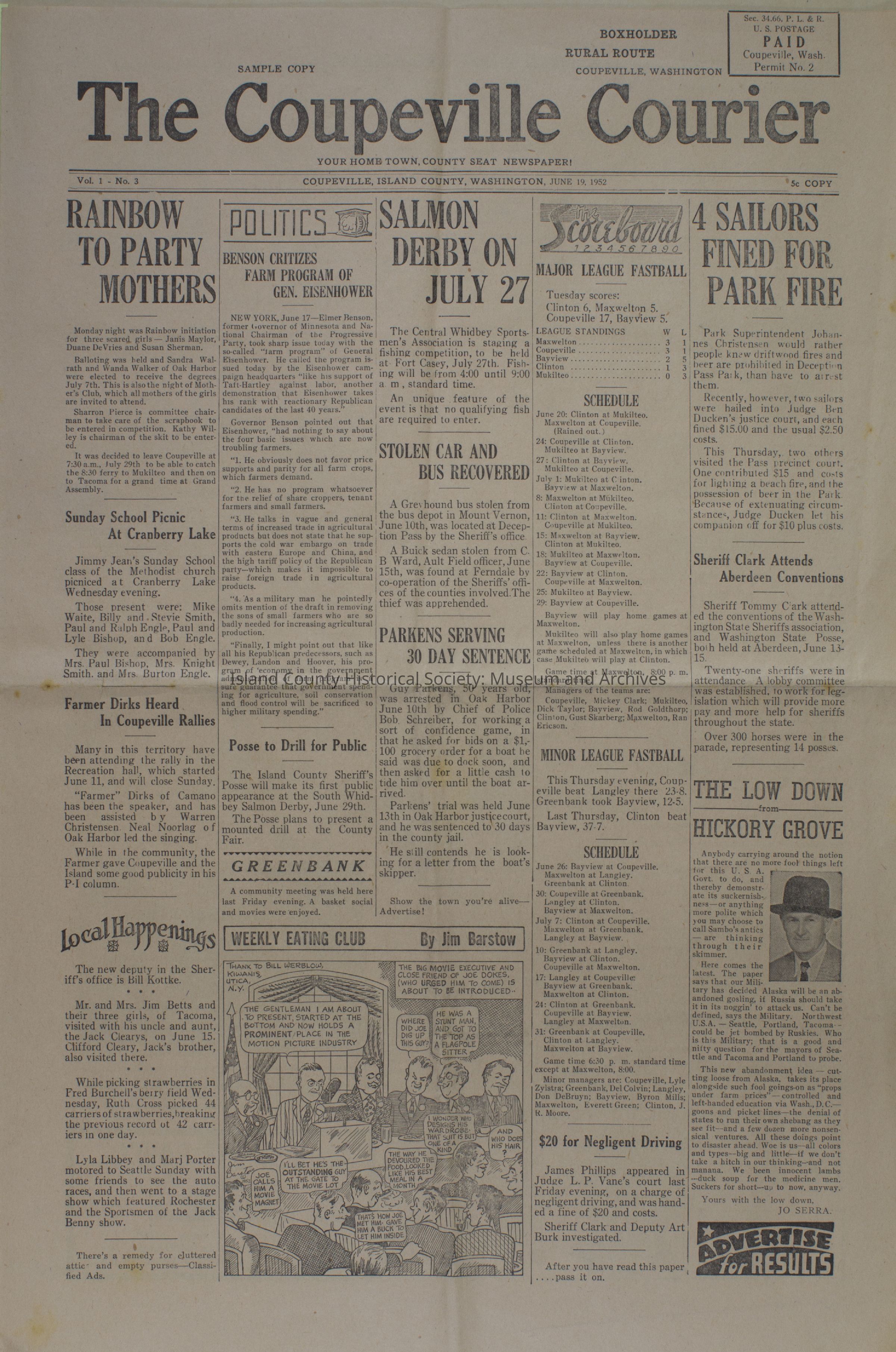 Coupeville Courier, June 19, 1952Entry/Object ID