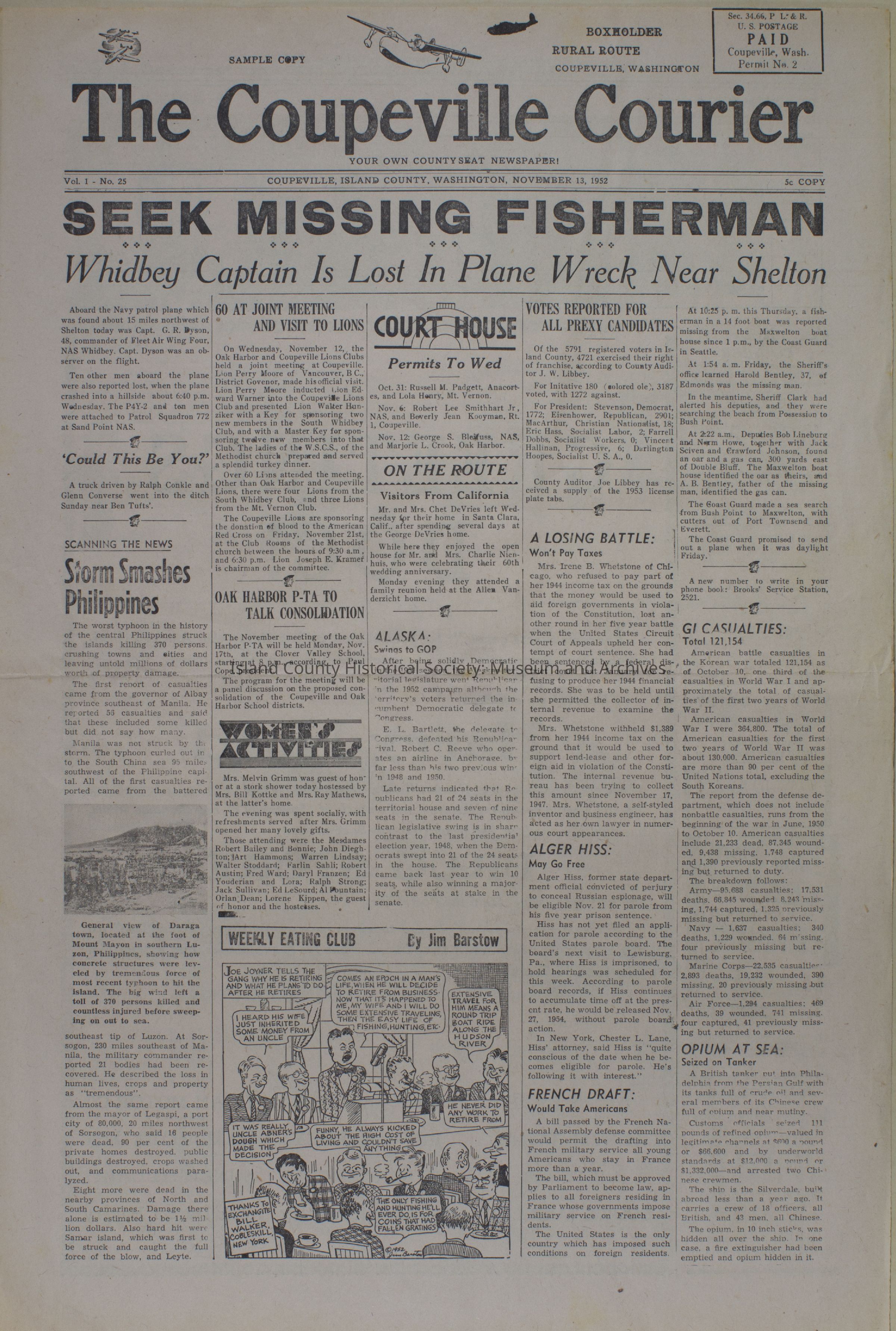 Coupeville Courier, November 13, 1952Publication Details
