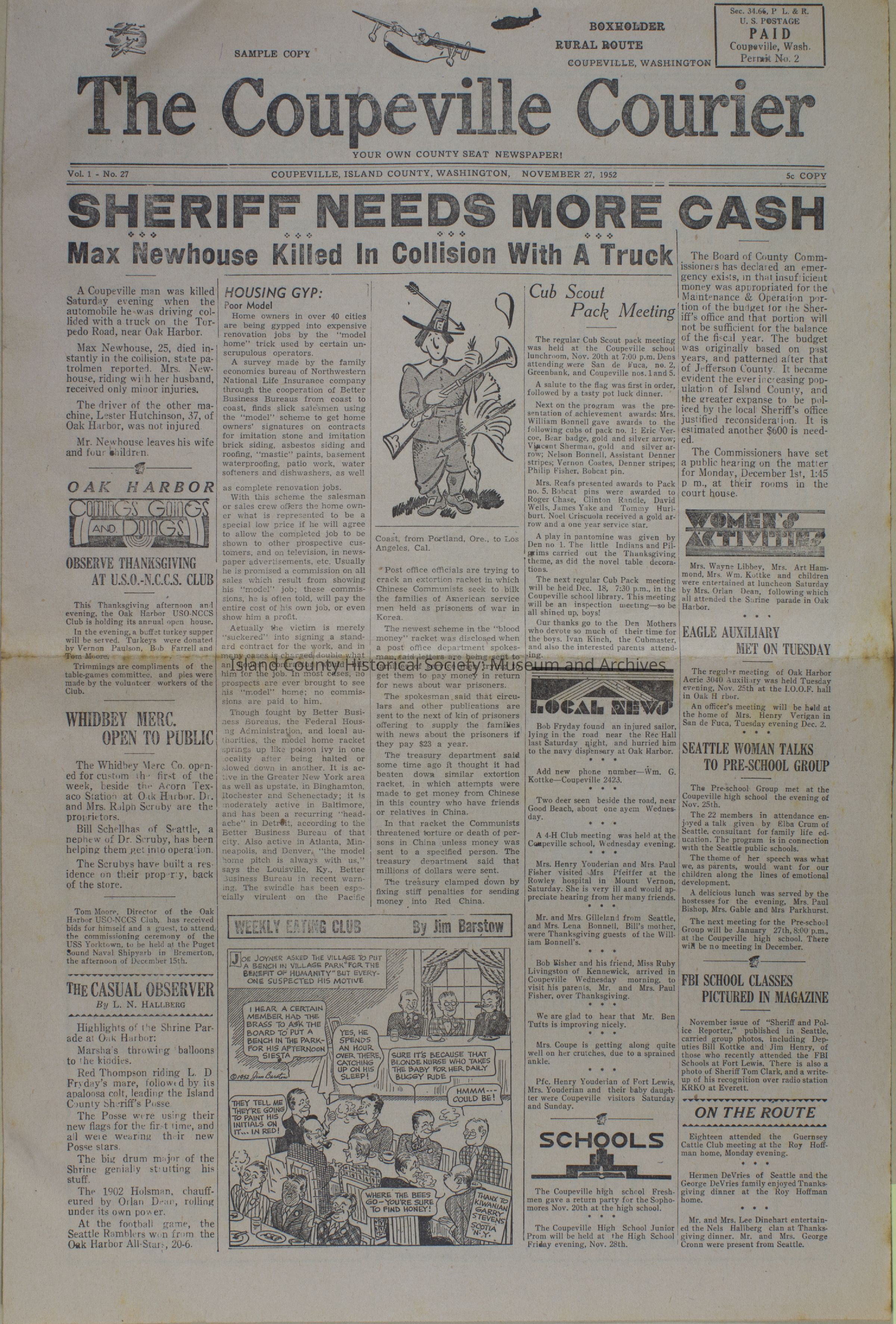 Coupeville Courier, November 27, 1952Entry/Object ID