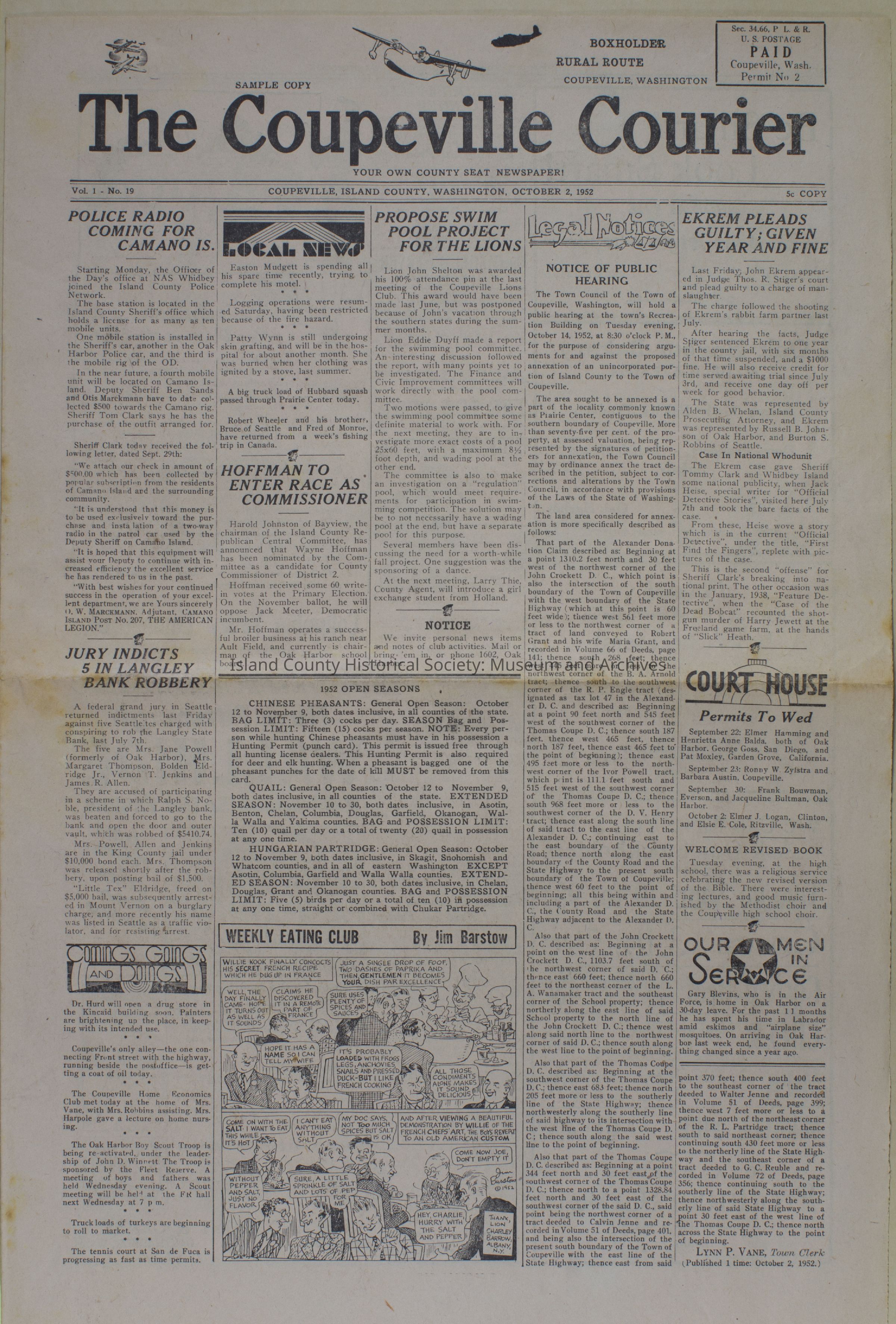 Coupeville Courier, October 2, 1952Publication Details