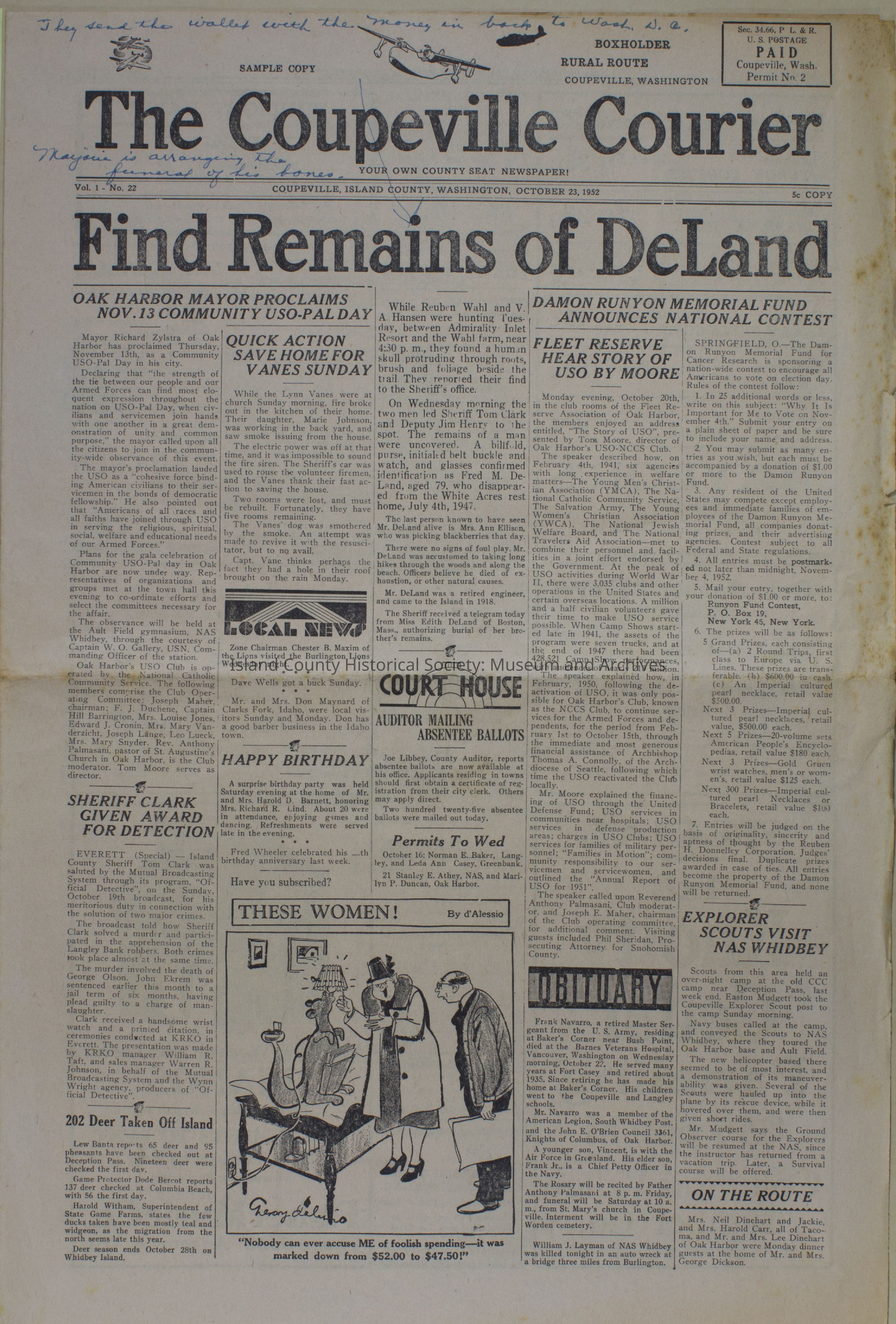 Coupeville Courier, October 23, 1952Publication Details