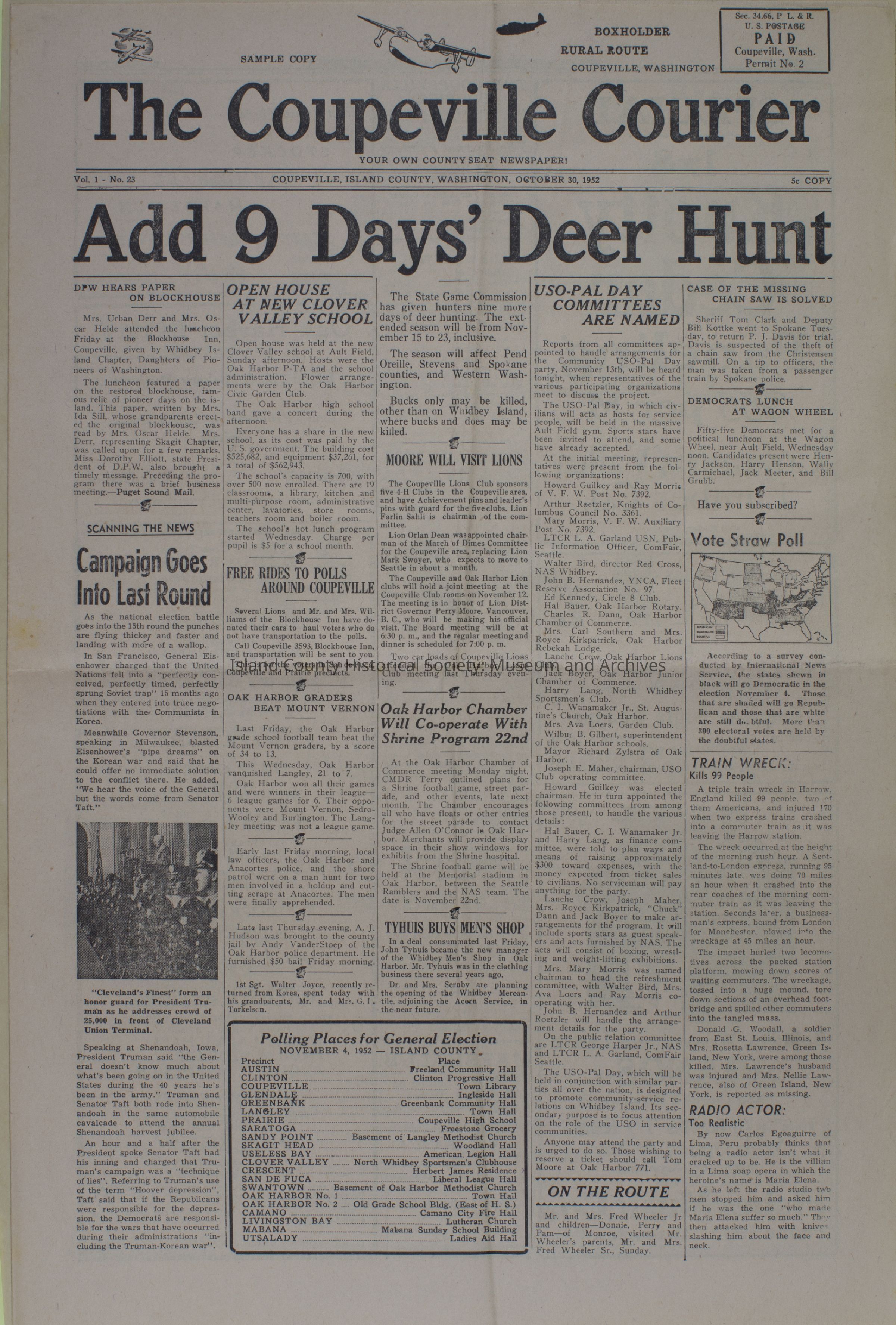 Coupeville Courier, October 30, 1952Publication Details