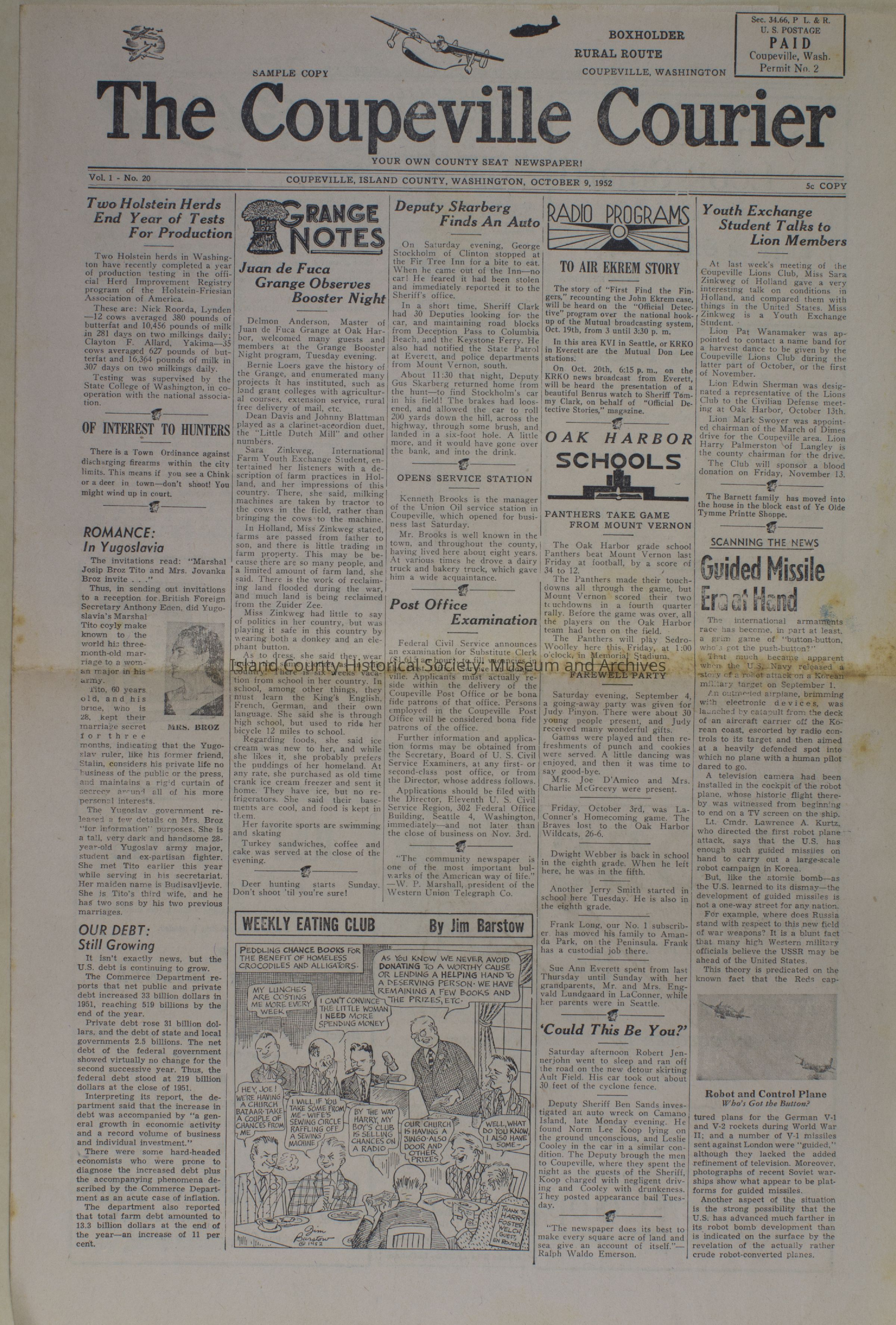 Coupeville Courier, October 9, 1952Entry/Object ID