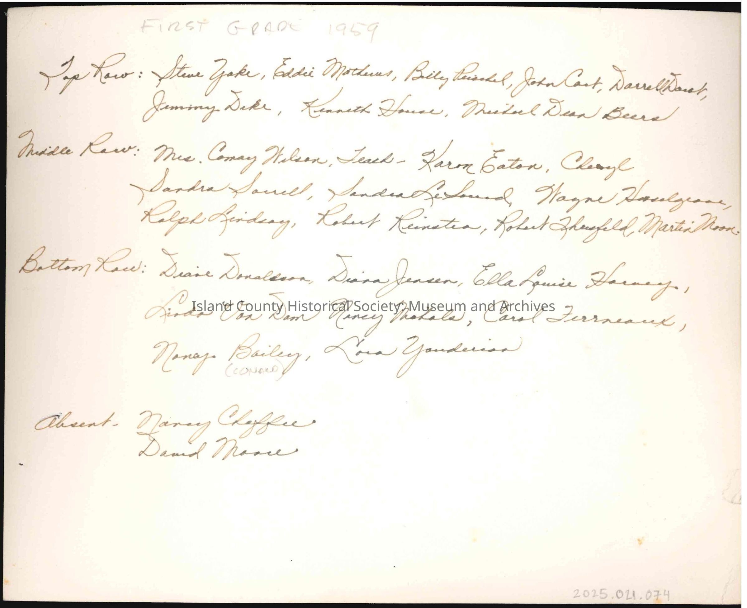Coupeville Schools, Yake, Steve, Mathews, Ed, Peischel, Billy, Cort, John, Darst, Darrell, Dike, Jimmy, House, Ken, Beers, Michael, Eaton, Karen, Sorrell, Cheryl Sandra, LeSourd, Sandra, Hesselgrave, Wayne, Lindsay, Ralph, Reinstra, Robert, Thiesfeld, Robert, Moon, Martin, Donaldson, Diane, Jensen, Diana, Harvey, Ella Louise, VanDam, Linda, Nichols, Nancy, Furneaux, Carol, Conrad, Nancy Bailey, Youderian, Lora