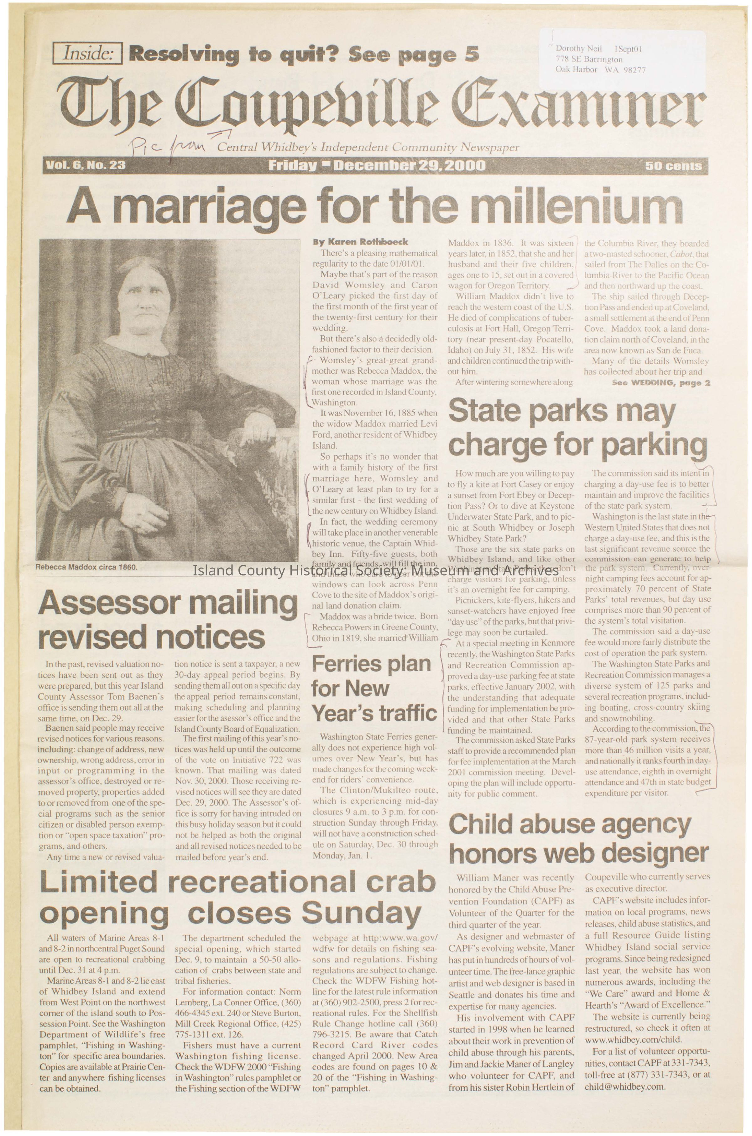 Coupeville Examiner, December 29, 2000Publication Details