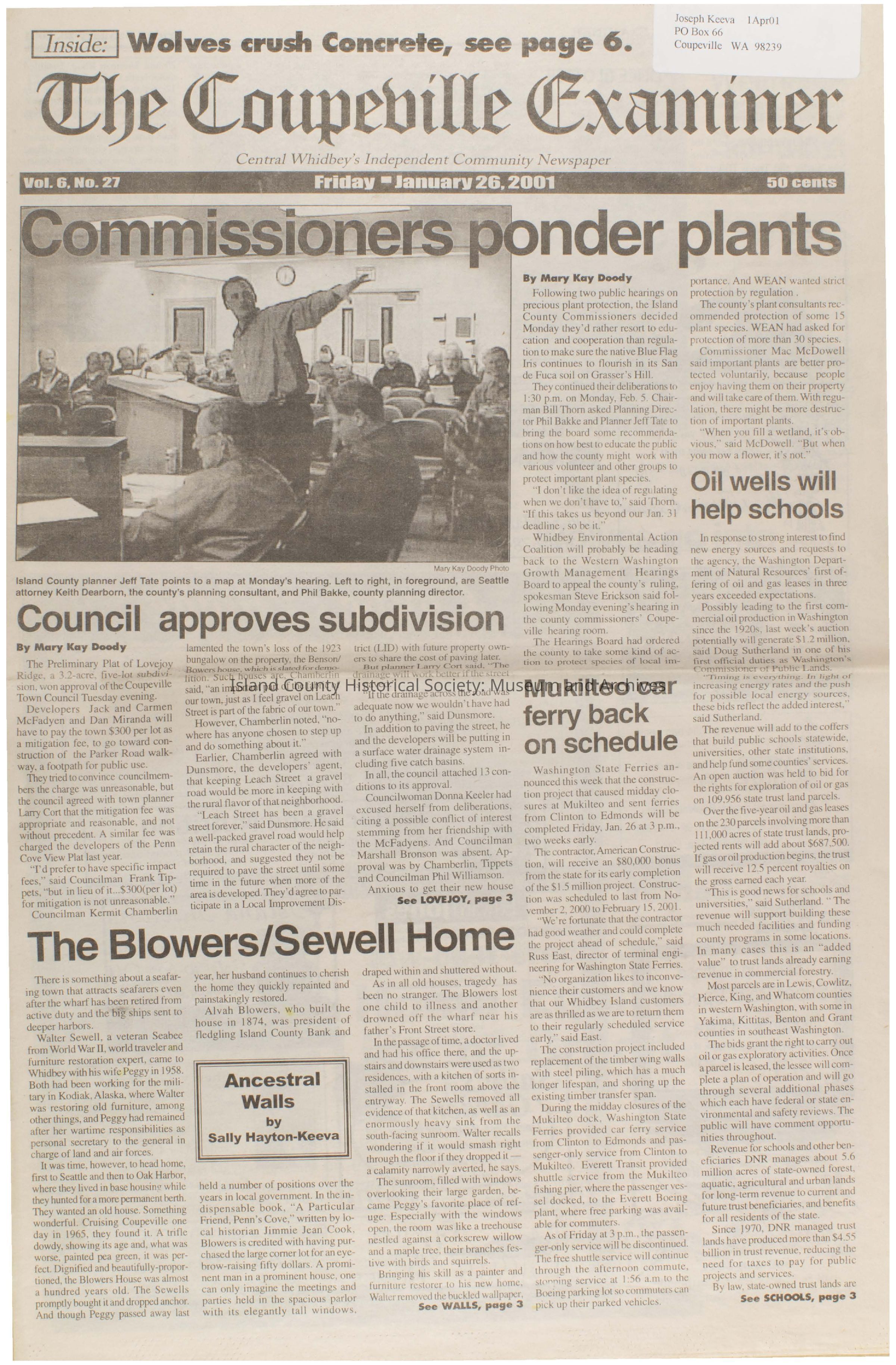 Coupeville Examiner, January 26, 2001Publication Details