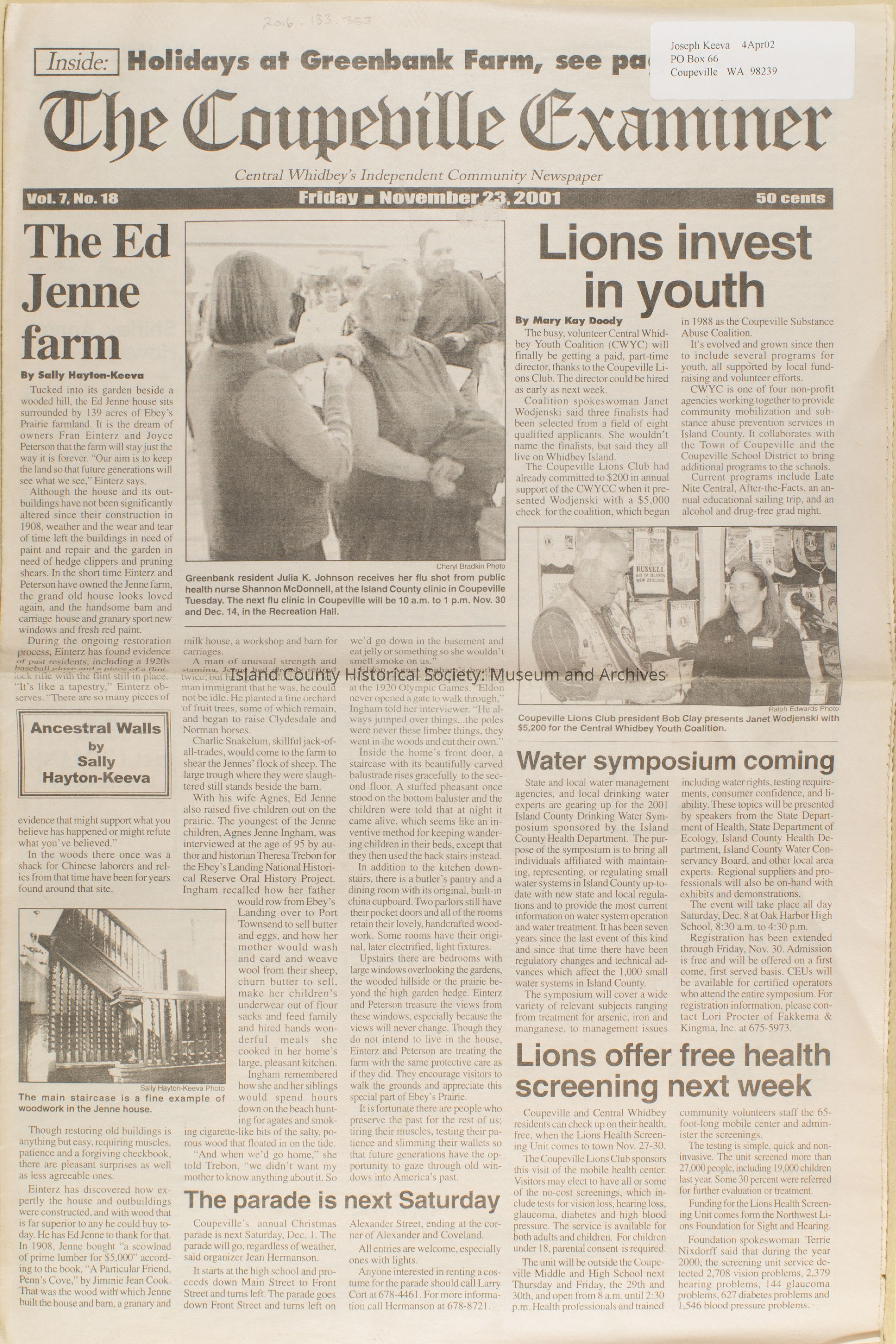 Coupeville Examiner, November 23, 2001Publication Details